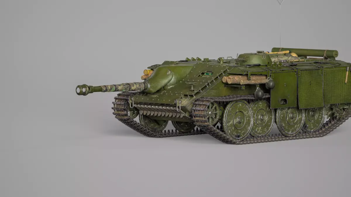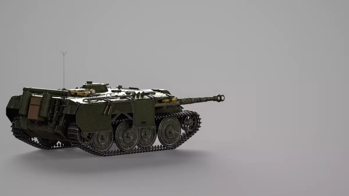 In 1942 Germany finally saw the need to standardize parts and production of it’s tanks. The E-series was slated to replace armor manufactured after 1945. Six chassis were planned: the E5,E10, E25, E50, E75 and the E100. The E-10 was developed as a replacement of the Panzer 38(t) and the designs based on it. Many of it’s parts were exchangeable with the E25. E-series vehicles were to have rear drive with transverse mounted engines, externally sprung suspensions, large diameter overlapping road wheels along with Panther tracks and a hydrostatic drive. All six basic designs of E-Series would have standardized parts making production, maintenance and service easier and cheaper. The E-10 was unique in having an auxiliary drive coupled to the suspension in order to lower and raise the vehicle.