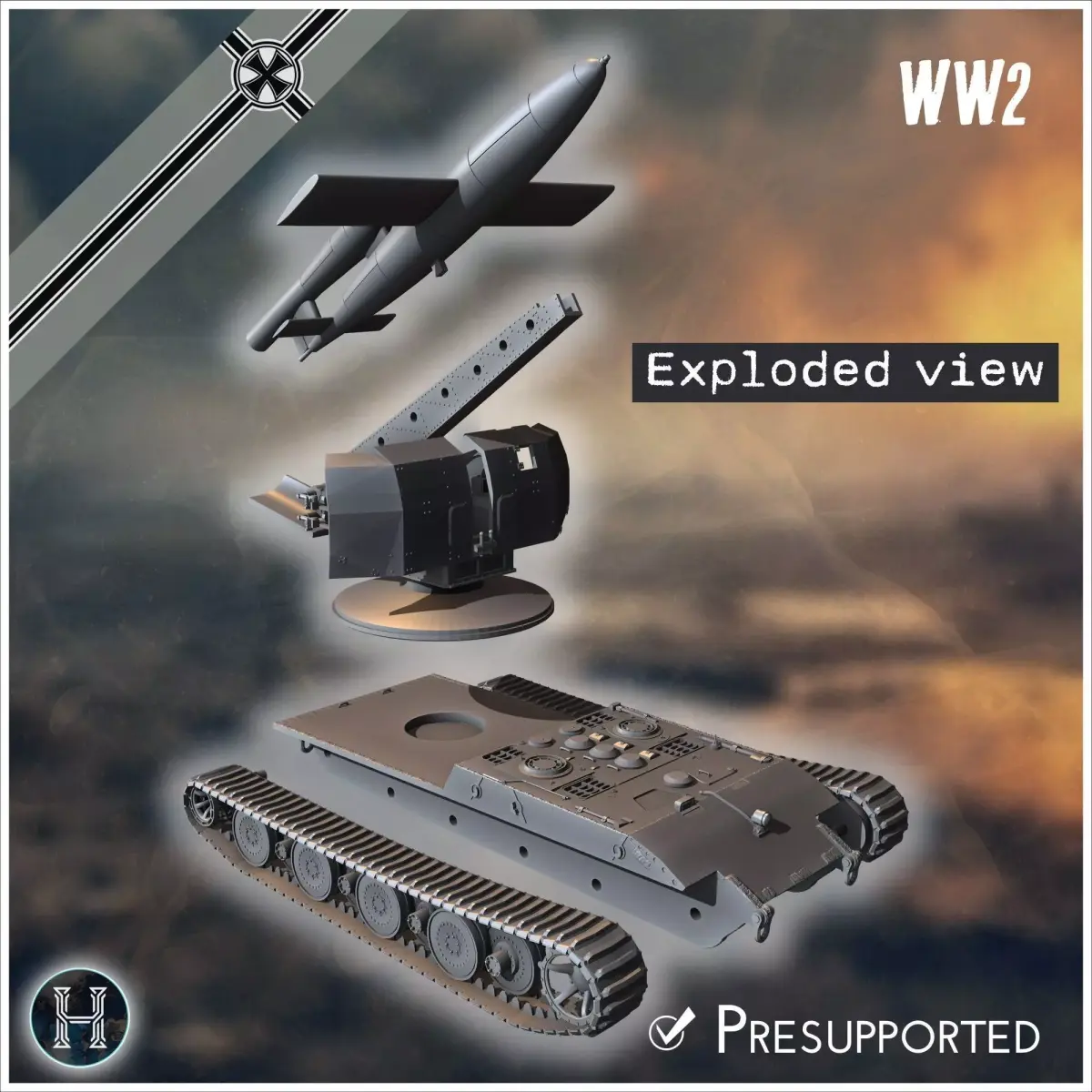 E-100 mit Raketenwerfer V-1 Rakete rear version Entwicklung rock 3D print model
