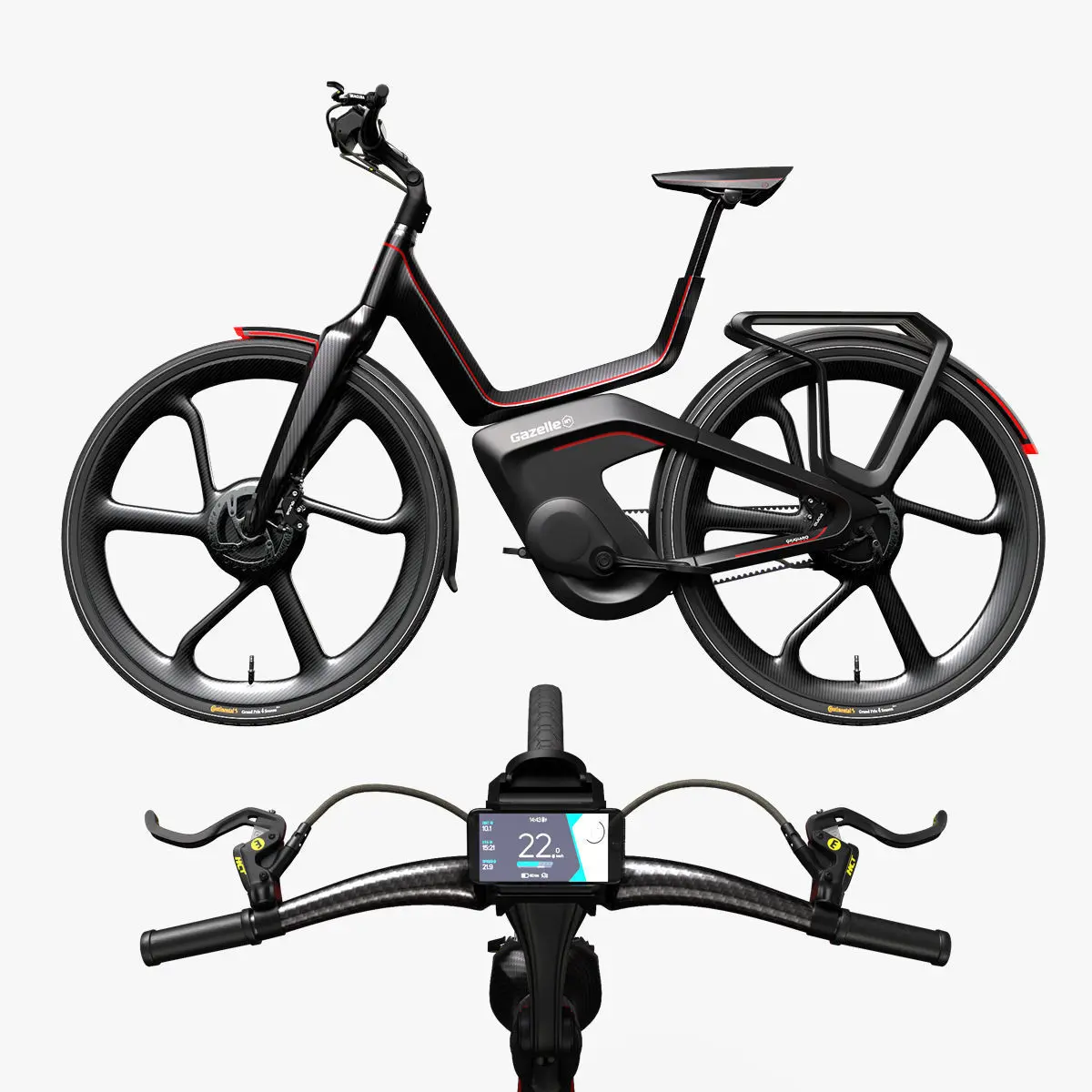 Giugiaro Design is revealing how the bike of the future will look. The N°1, a connected e-bike provides assistance of up to 45 kilometers an hour. This bike, which is a combination of Italian design and Dutch ride comfort, is a concept. With this bike Gazelle will experiment with advanced applications..