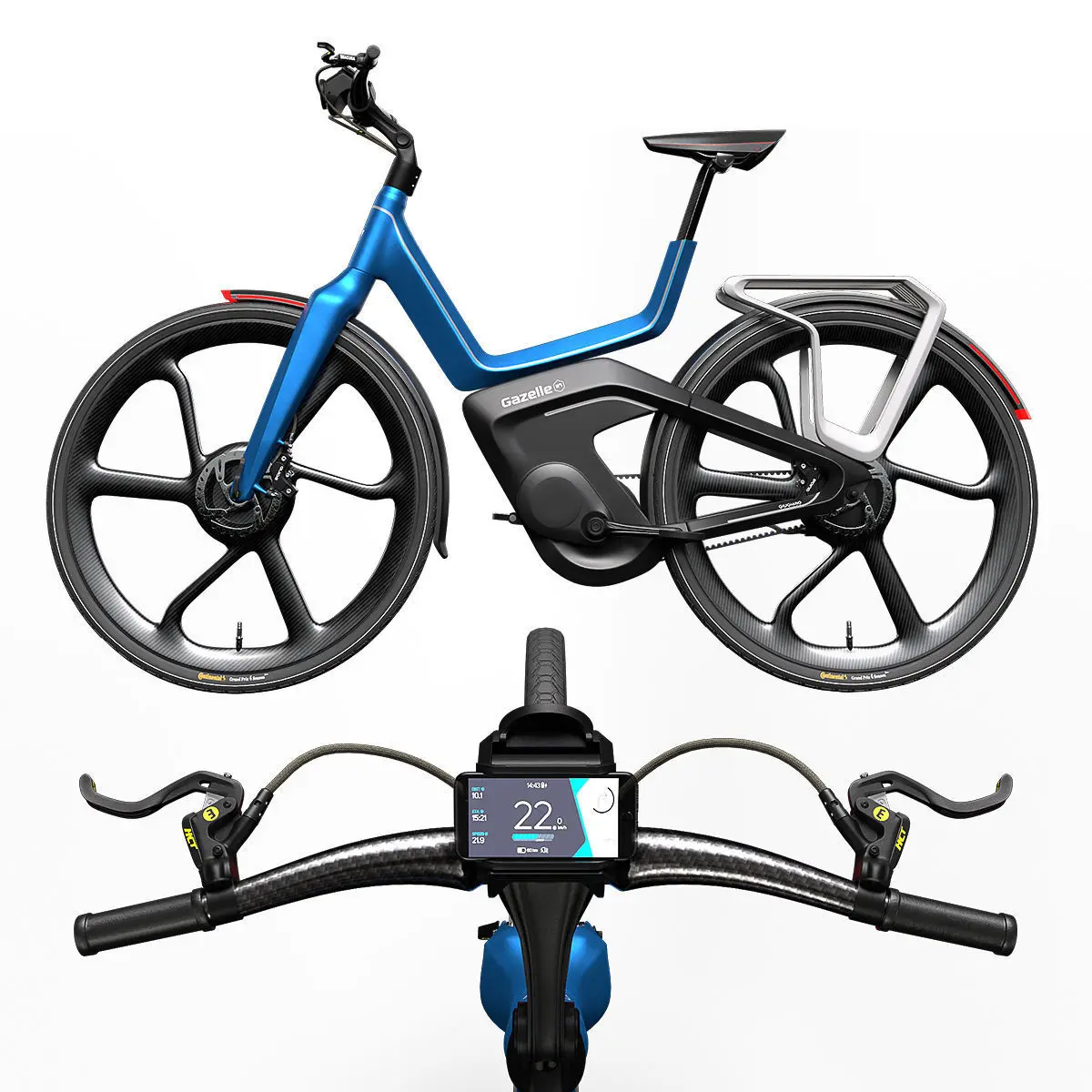Giugiaro Design is revealing how the bike of the future will look. The N°1, a connected e-bike provides assistance of up to 45 kilometers an hour. This bike, which is a combination of Italian design and Dutch ride comfort, is a concept. With this bike Gazelle will experiment with advanced applications..