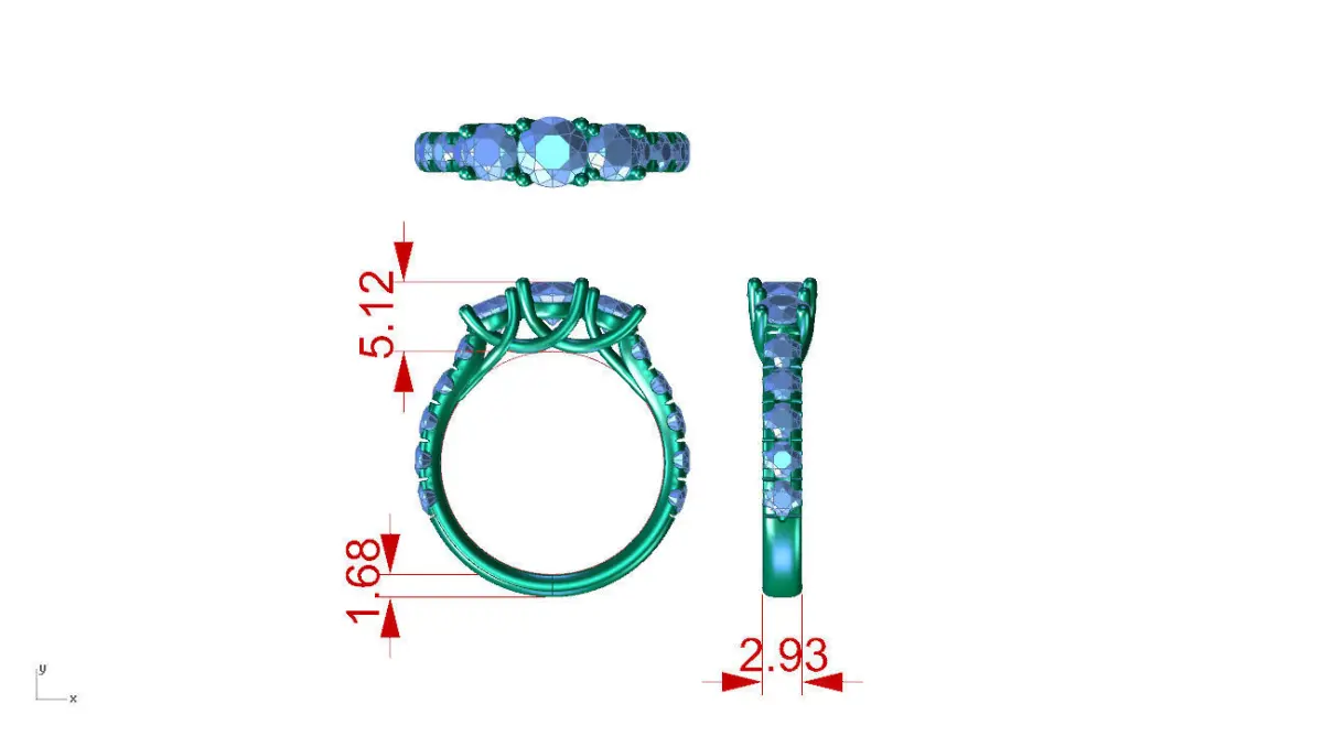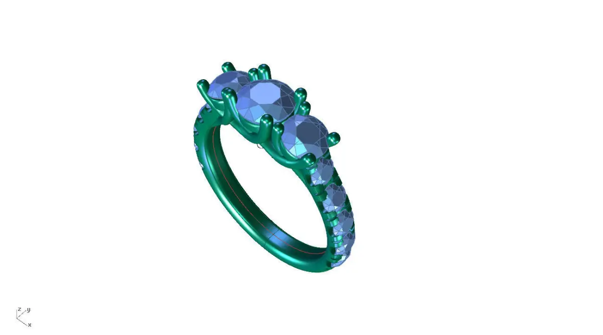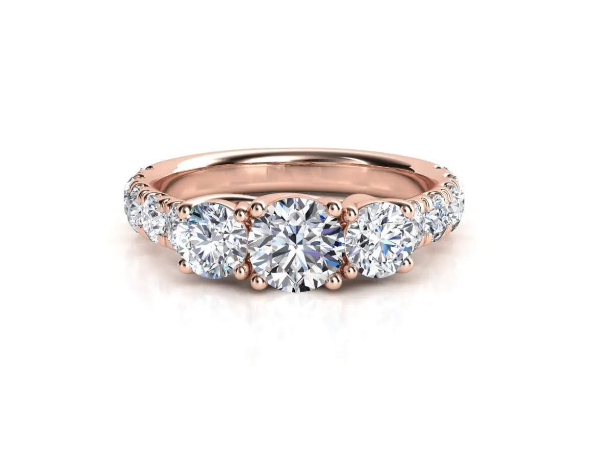 E ES021 three stone diamond engagement ring in rose gold 3D print model