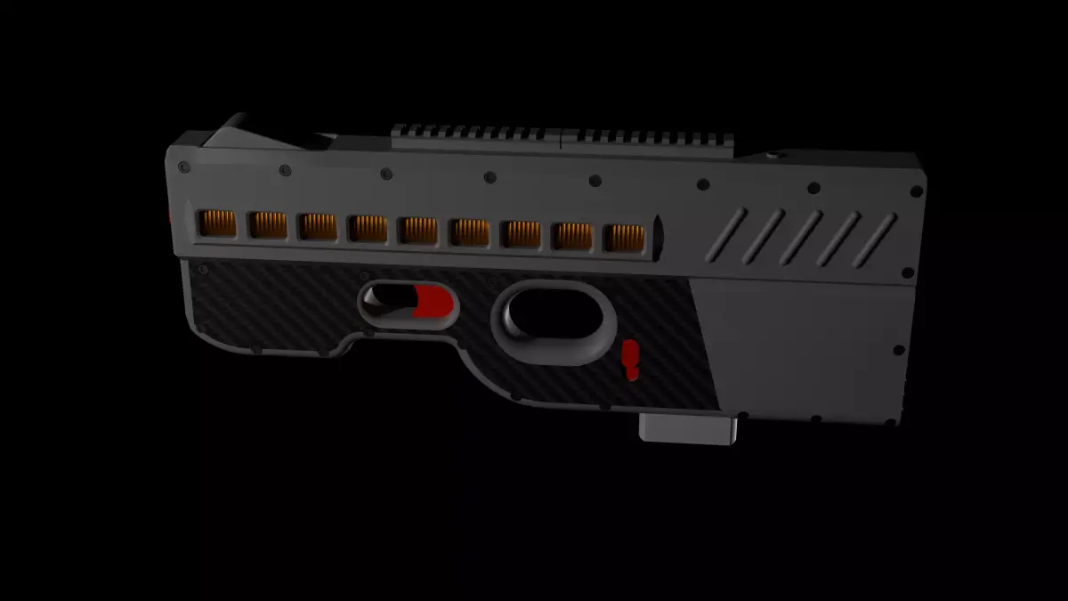 A medium Poly Model of the Chinese E-Shotgun with each moving part separated. It fires half inch disks from a flippable magazine using electromagnets and has muiltible fire modes and power settings changible with the built in screen at the top.