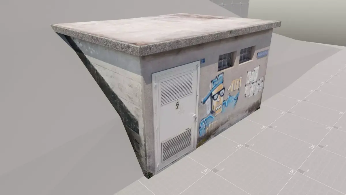 Industrial cabin, electrical box, concrete cabin, textured, high definition, high-resolution, real-life textures, graffiti