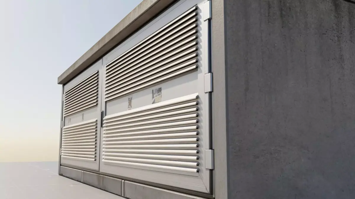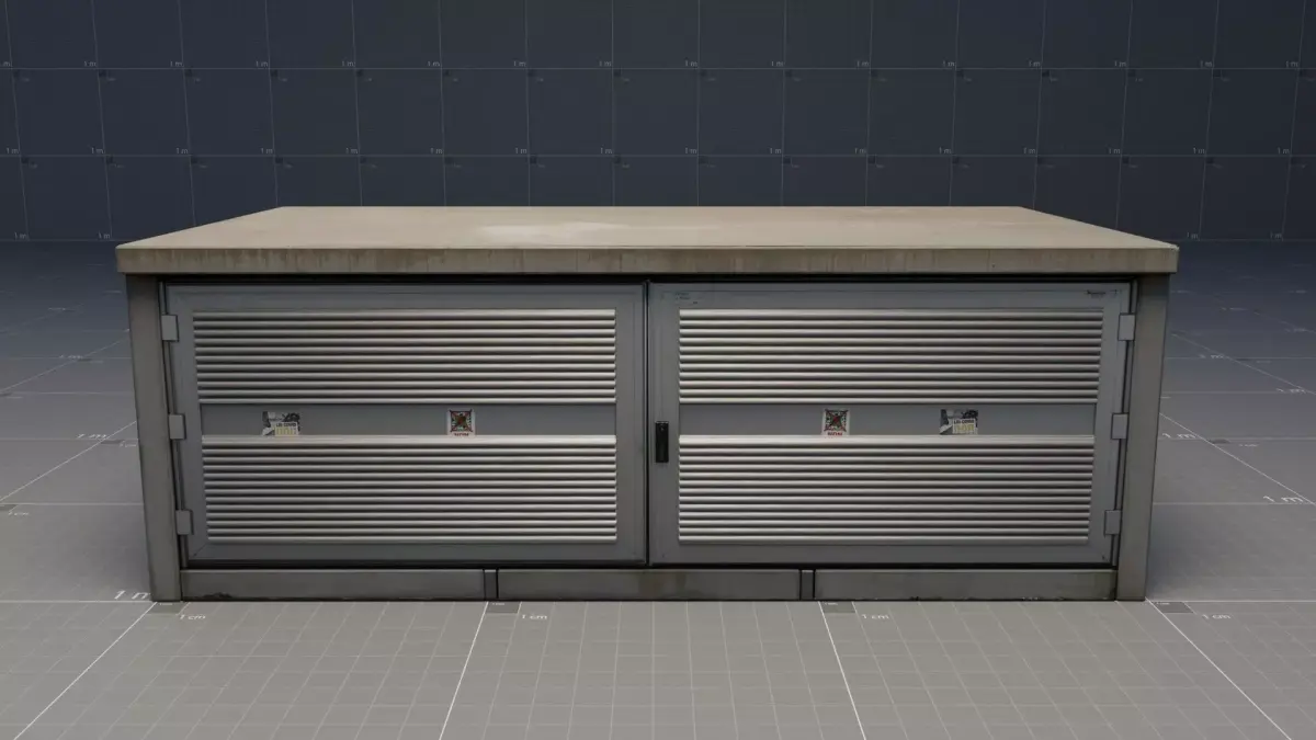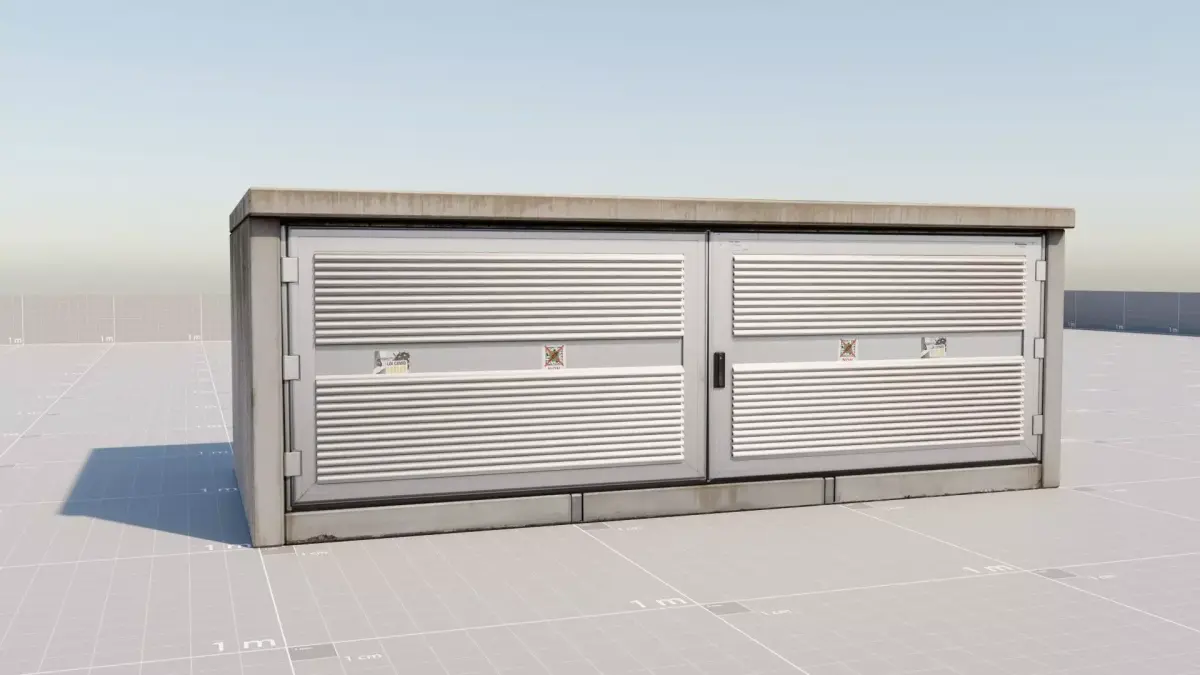 Industrial cabin, electrical box, concrete box, textured, high definition, high-resolution, real-life textures, aluminum door