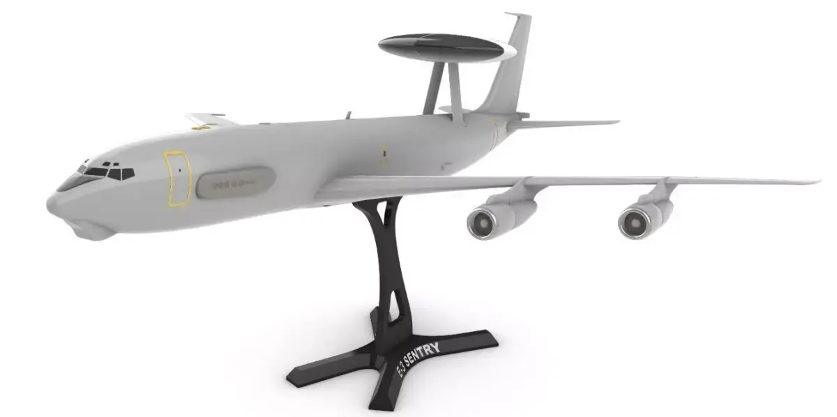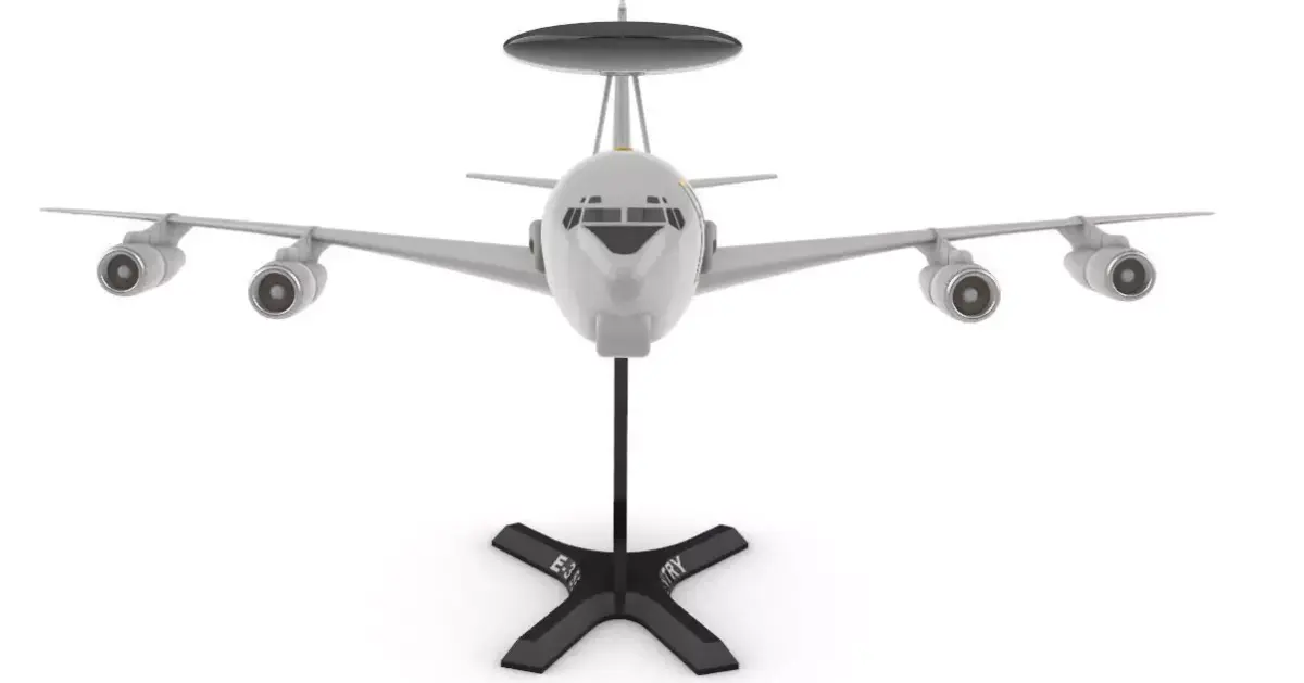 The Boeing E-3 Sentry is a military AWACS aircraft that provides all-weather surveillance, command, control and communications to the United States, United Kingdom, France, NATO and other air defense forces. Production ended in 1992 after 70 examples were built.