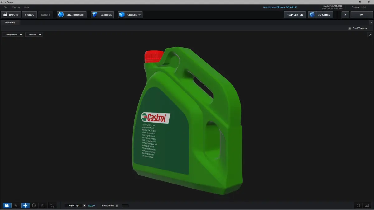 Open After Effects CC 2014 ( or higher) and create new composition ( You need Element3D V2.2 to use ) Create new Solid layer and add Element effect. ( Effect/Video Copilot/ Element ) Click Scene Setup Click on IMPORT inside Element3D scene setup Choose my .e3d preset for the model and press Open. If you dont see the model do not forget to right click on the model name and press Replace model then select the .obj model file in the respective models folder.