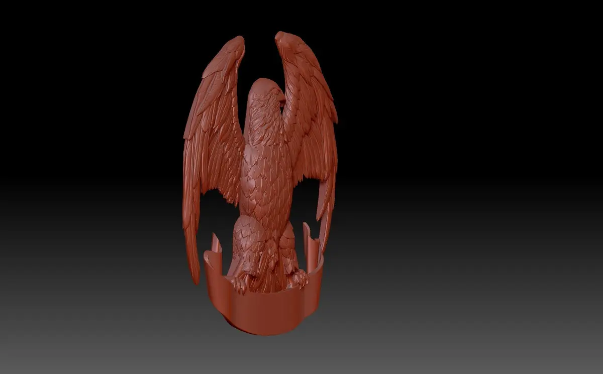 3d model of an eagle with parchment and spread wings. 3d model for cnc and 3d printing.
