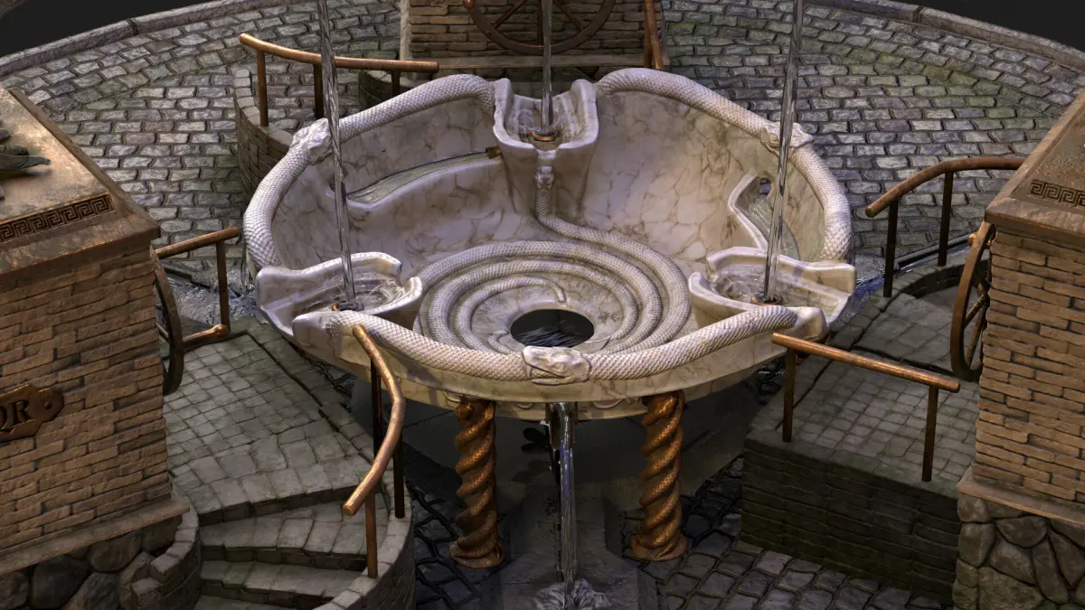 Midpoly small scene, inspired by roman legend about snake and eagle. Has 4 set of textures of 2k ( eagle, ladder, fontaind, floor) also has a water transparent part, which is just static mesh. Total polycount of the scene is about 123k polys.