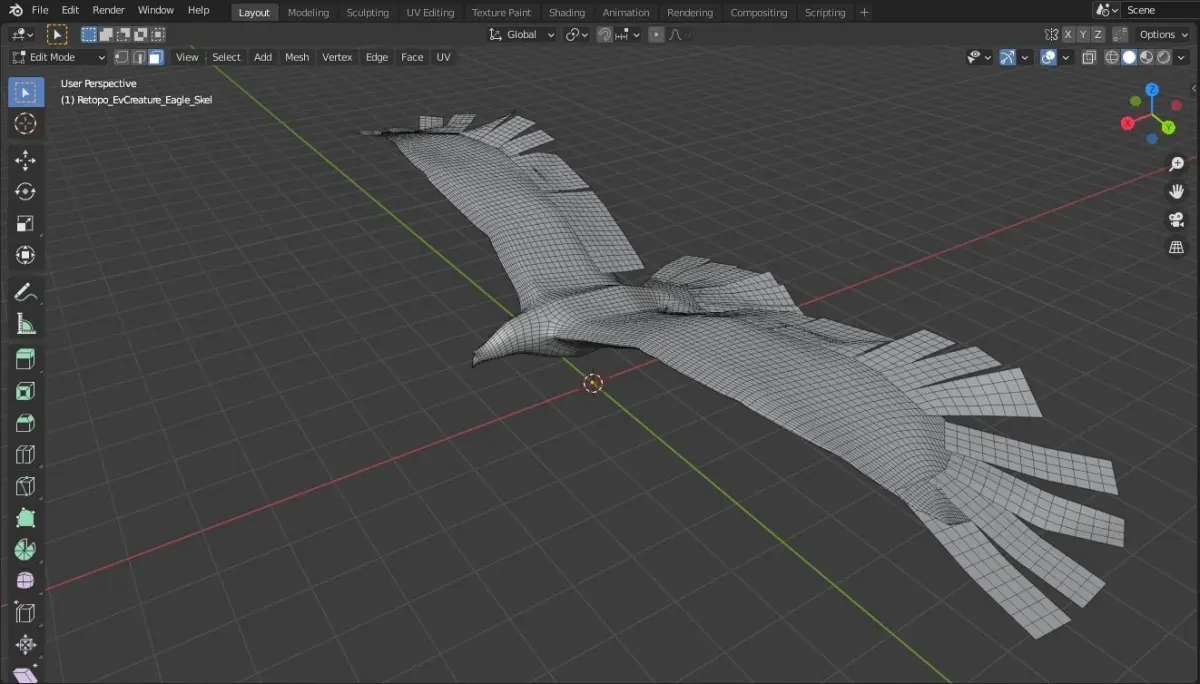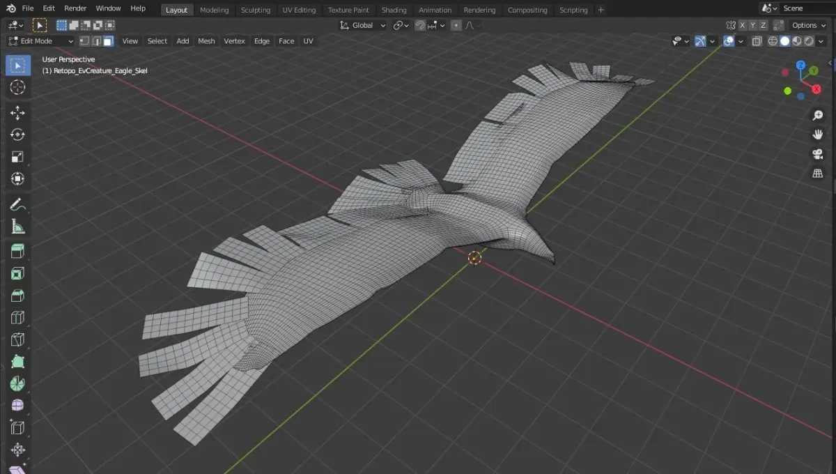 Crafted with versatility in mind, the base mesh provides an ideal starting point for further refinement and customization. Whether you're a digital artist, animator, or game developer, this model offers a solid foundation upon which to build intricate feather detailing, lifelike textures, and captivating poses. Its clean topology and well-defined edge loops facilitate smooth sculpting, rigging, and animation processes, making it an essential tool for bringing your eagle-themed projects to life.