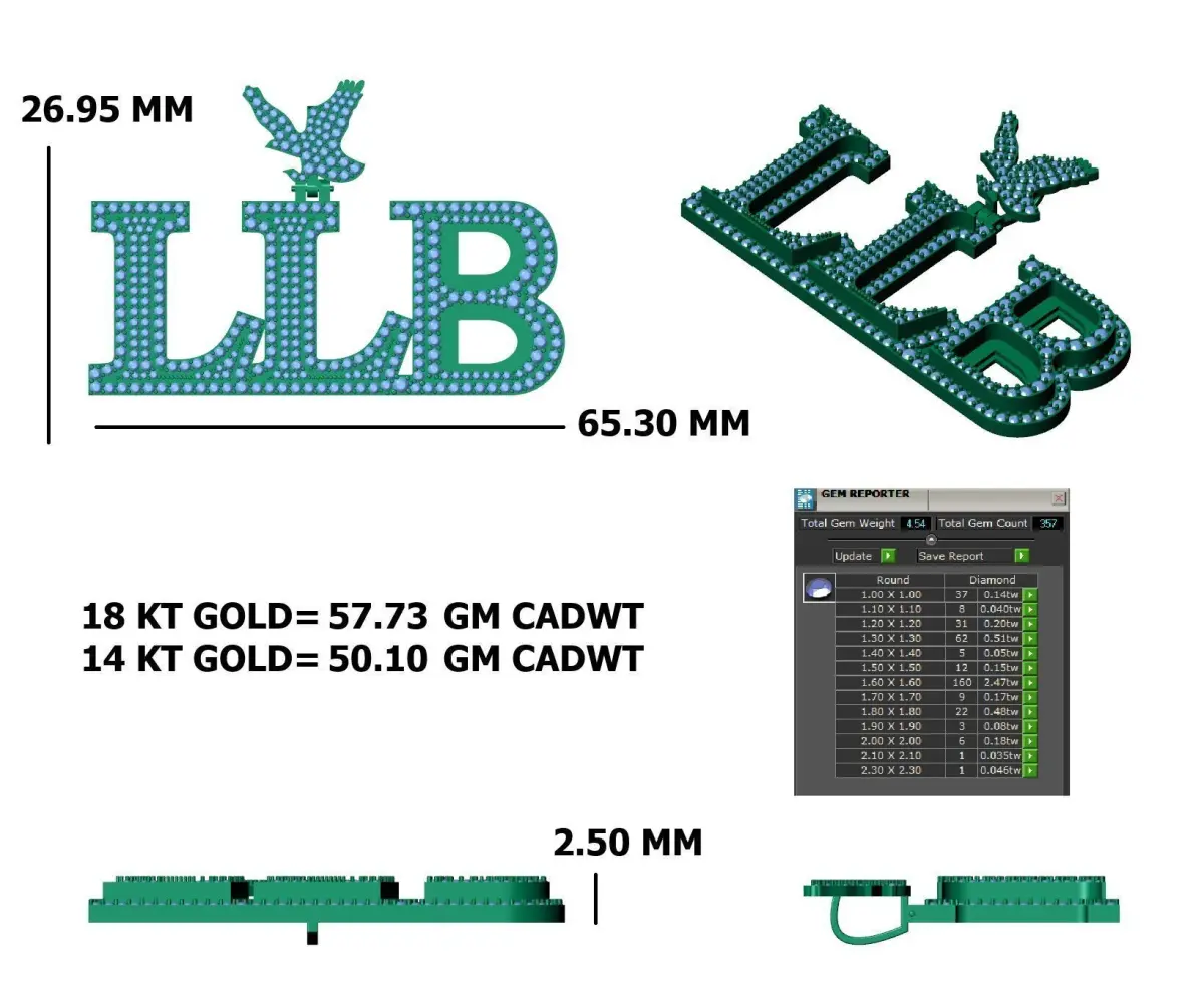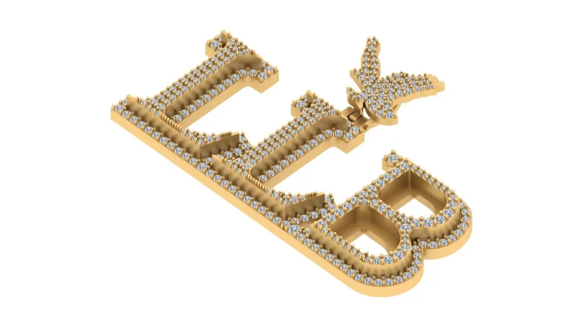 This customized initial pendant features the bold letters LLB, fully encrusted with meticulously set diamonds. The unique design is enhanced with an intricately detailed eagle sitting on top of the letters, symbolizing power, freedom, and ambition. The pendant's rectangular, block-letter design gives it a modern and luxurious aesthetic, making it an ideal statement piece for hip-hop jewelry lovers.