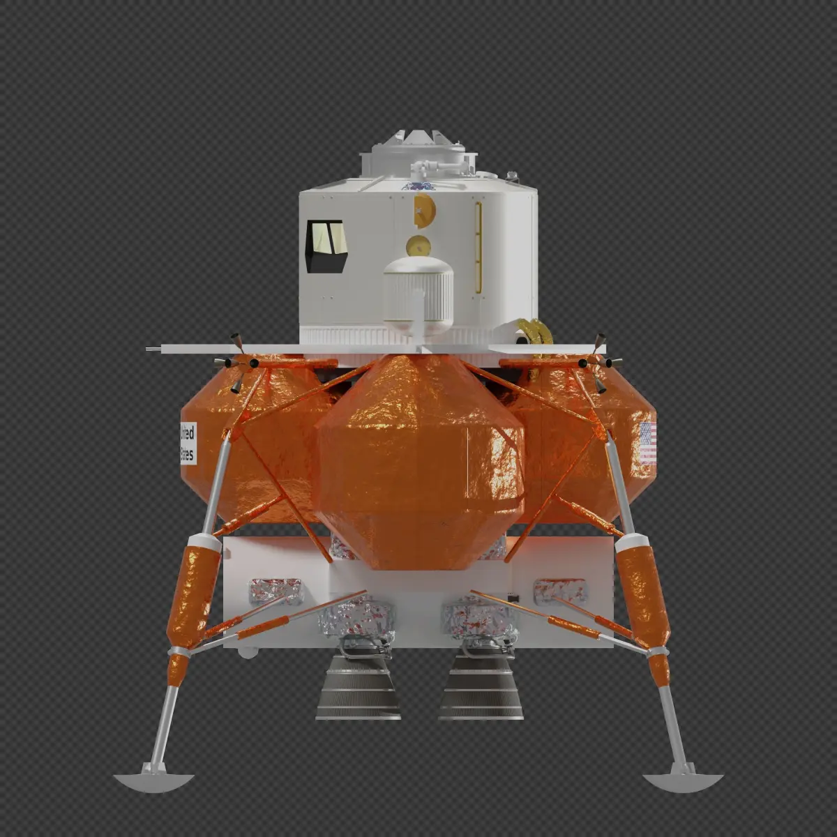 This reusable, single-stage crewed lunar lander was proposed by Eagle Engineering in the early 1990s, as part of a series of transportation architecture studies for NASA. It featured a main cabin sized for 6 astronauts, derived from a Space Station Freedom module, and a low-hung airlock module for easy EVA access to the lunar surface which also could dock directly to a pressurized rover. Use of hydrogen and oxygen propellants offered high performance and also allowed easy evolution towards in-situ resource utilization. A pair of small, expendable cargo pods next to the main cabin allowed relatively easy unloading of cargo via crane