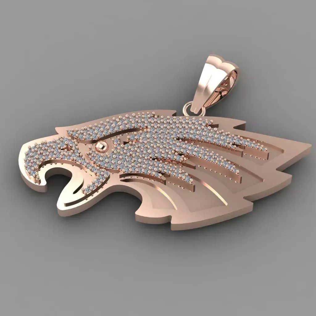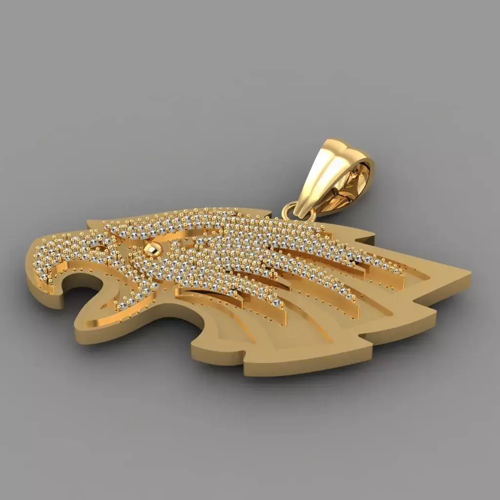 A majestic gold eagle head pendant crafted with sharp, lifelike details that capture the eagle’s strength and pride. Accented with sparkling diamonds or cubic zirconia, it adds a brilliant touch of luxury. The bold design symbolizes power, freedom, and keen vision, making it a striking statement piece.
