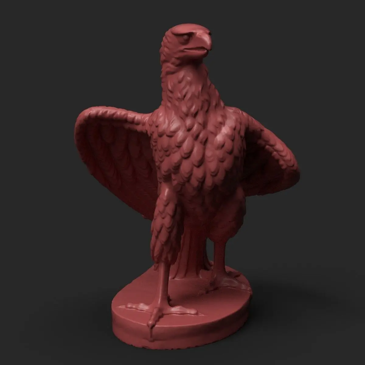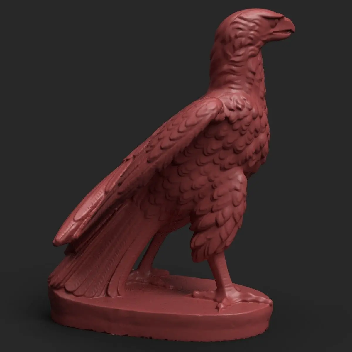 3d model of an eagle. The mesh is watertight and ready to be printed. It's in centimeters and the height is about 21,5 cm. The dimensions of the base is 15 cm x 16 cm.