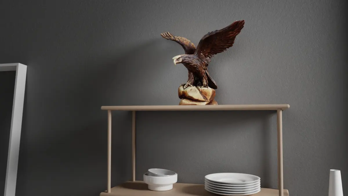 This is a photorealistic low poly 3D model of the eagle statuette.