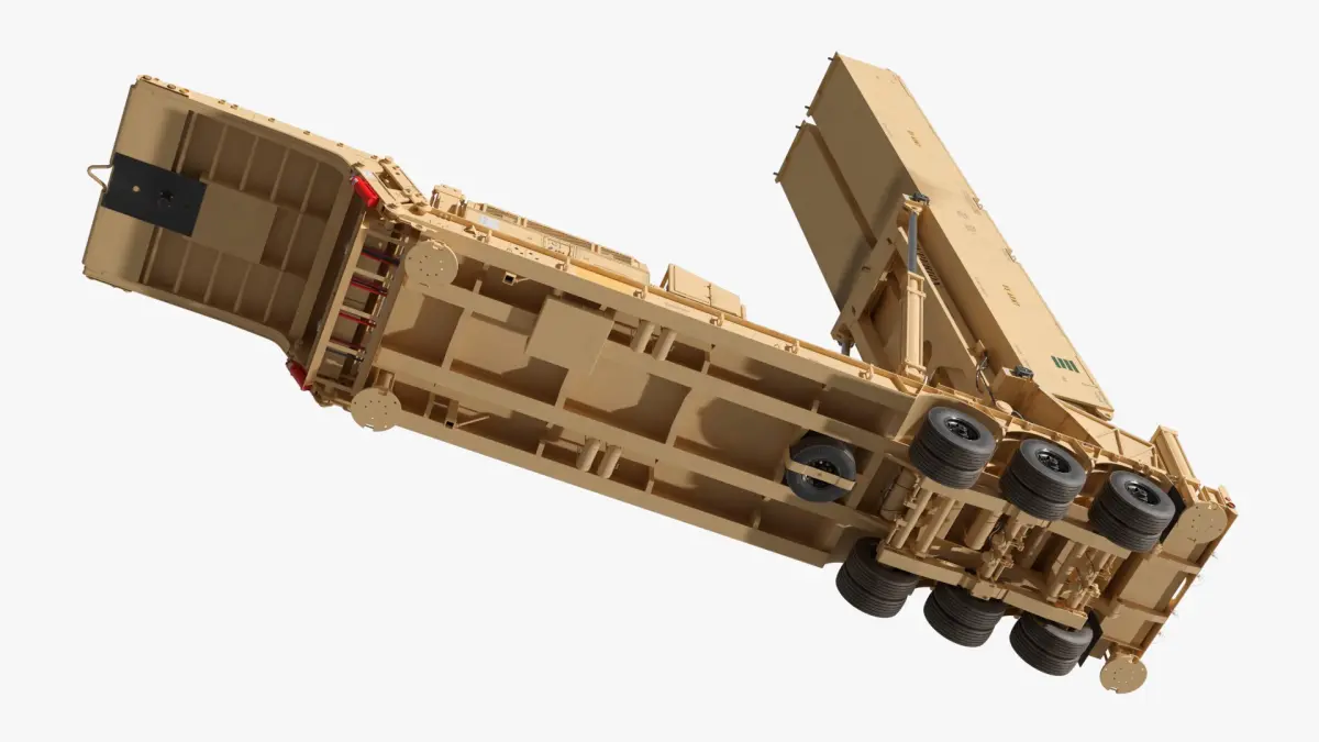 Eagle Strike Tactical Launcher Platform Deployed For Combat is a 3d model of a mobile missile defense system designed for intercepting and neutralizing threats in the terminal phase of their trajectory.