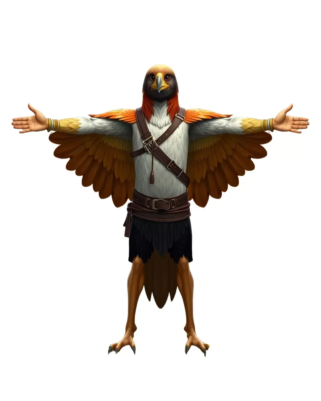 This Eagle Warrior Character model pack features a beautifully detailed anthropomorphic bird warrior with a rich blend of colors and textures. Designed for use in a variety of digital environments, this model captures the majesty of an eagle with the might of a warrior. Perfect for fantasy games, animations, and interactive narratives, the character can enhance your scene as a central hero or an intriguing secondary figure. Each model has 3 levels of detail: low-poly (1000 triangles for mobile), middle-poly (10,000 triangles for environment), and high-poly (100,000 triangles), allowing for use in production rendering (such as 3ds Max, Maya, Cinema4D, Blender, Vray/Corona/Cycles, and others), game engines (Unity and Unreal compatible), and interactive presentations, providing a choice of detail based on the LOD System principle. Textures are PBR, Diffuse, NormalMap, and reflection/roughness/metallic, suitable for any modern rendering engine. All models are accurately unwrapped with no overlapping UV. All textures are 4096*4096 in size. If you like this model, please like and leave a comment!