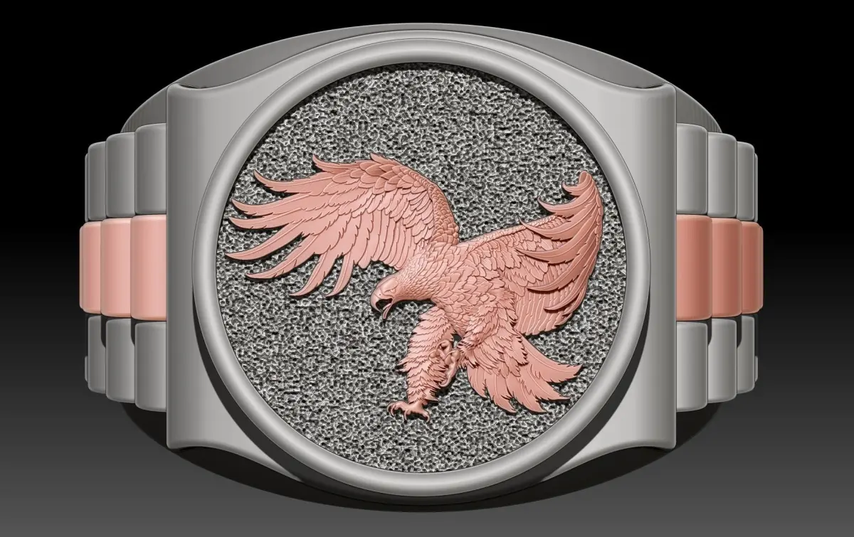 Eagle watch Man Ring silver gold printable jewelry 3D print model
