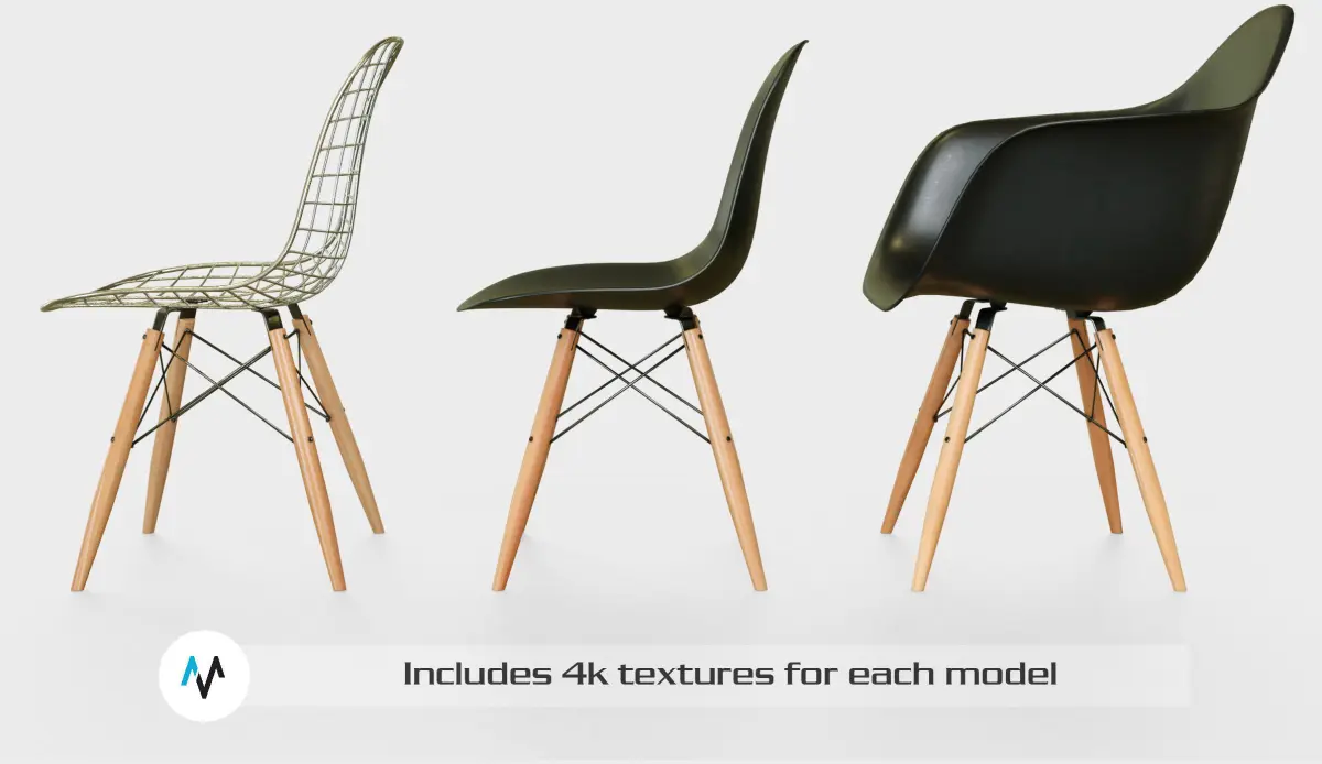 Eames Dowel chair collection Low-poly 3D model