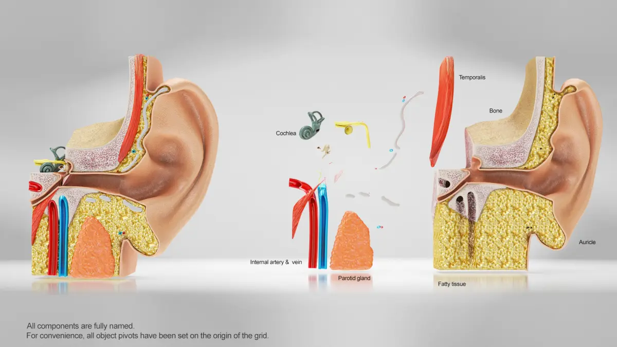 Ear Anatomy is a high quality, photo real models that will enhance detail and realism to any of your rendering projects. The model has a fully textured, detailed design to 4K that allows for close-up renders, and was originally modeled in 3ds Max 2014 and rendered with V-Ray