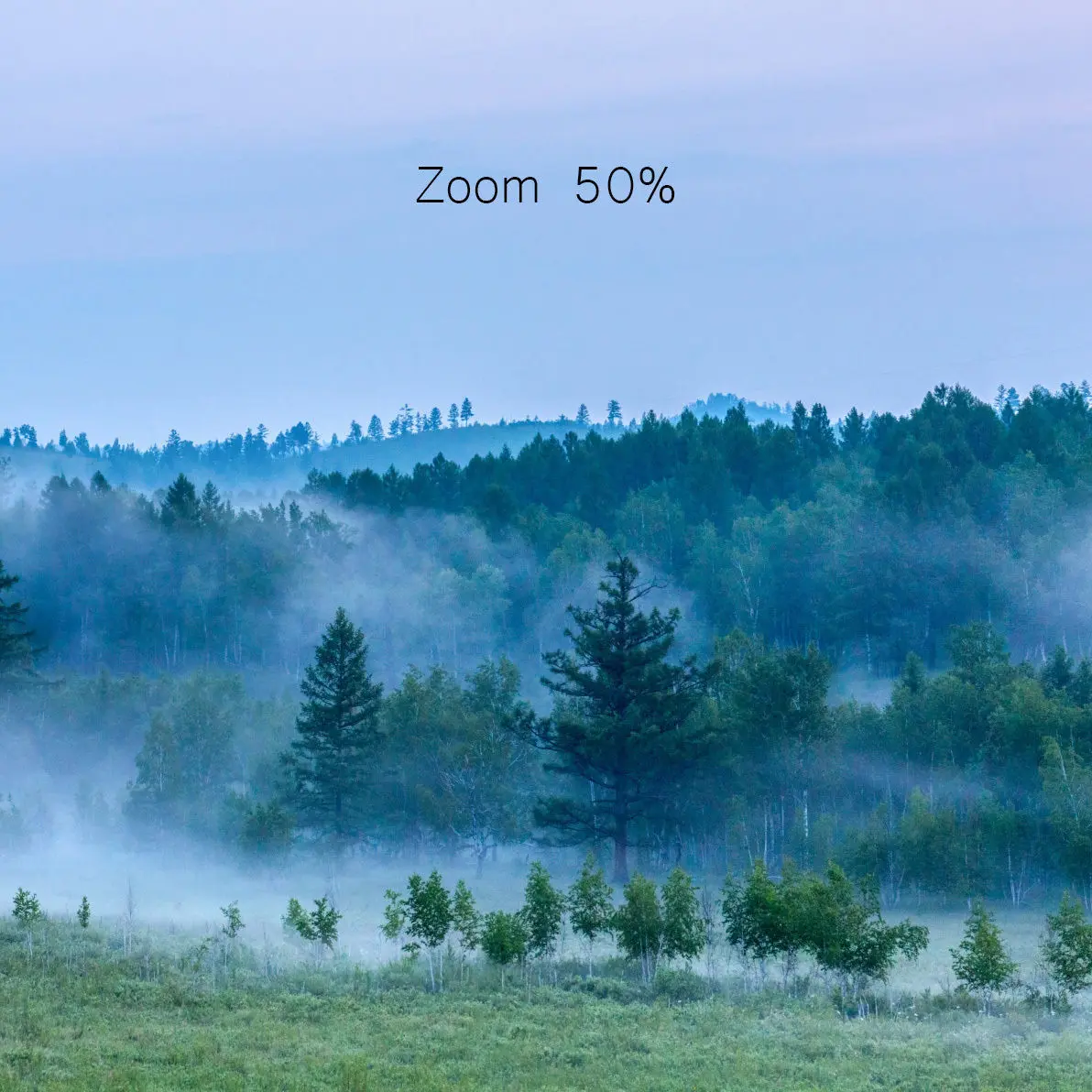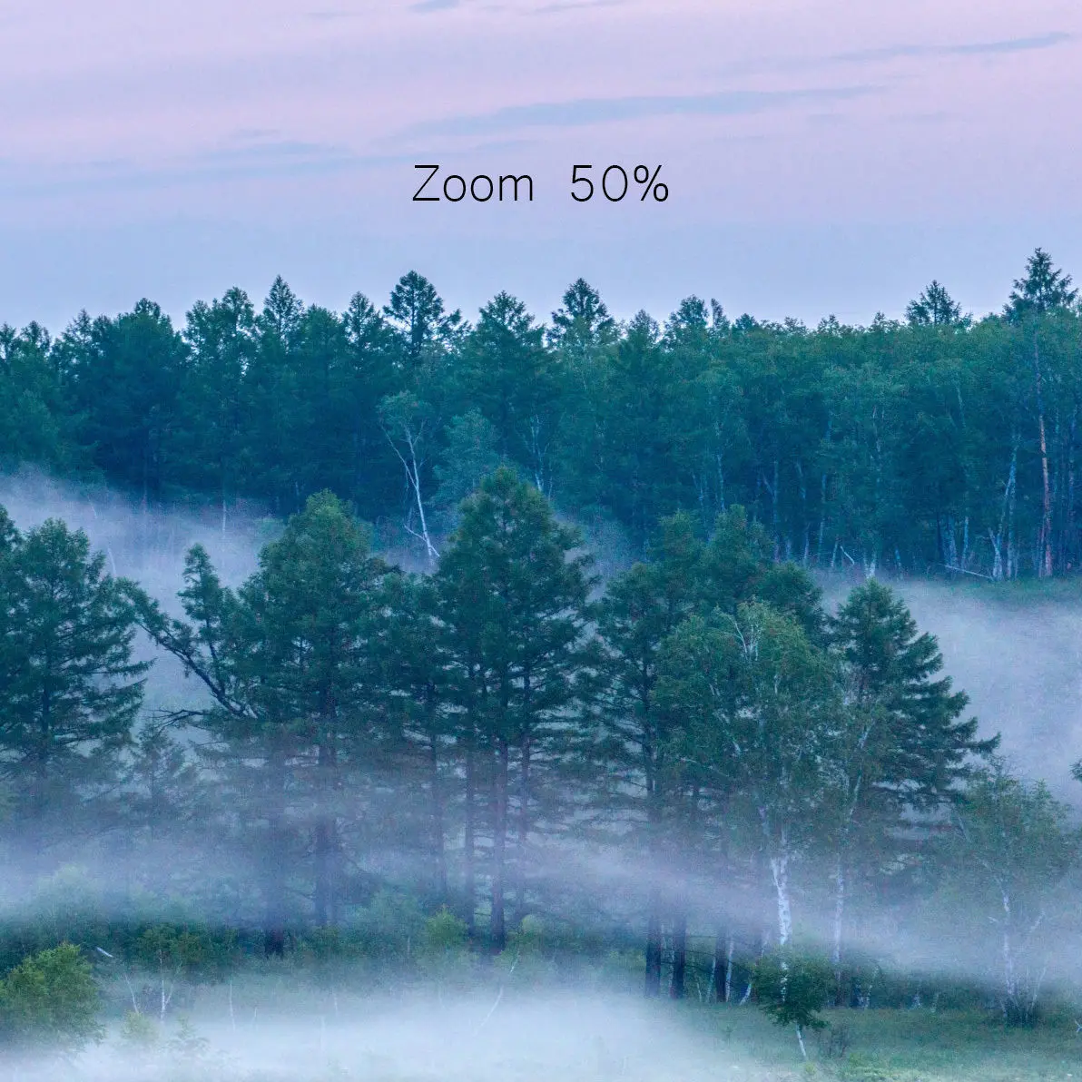 Early morning forest panorama