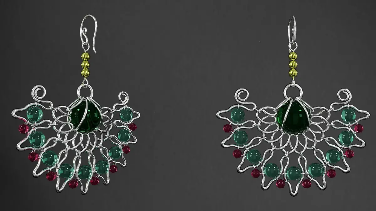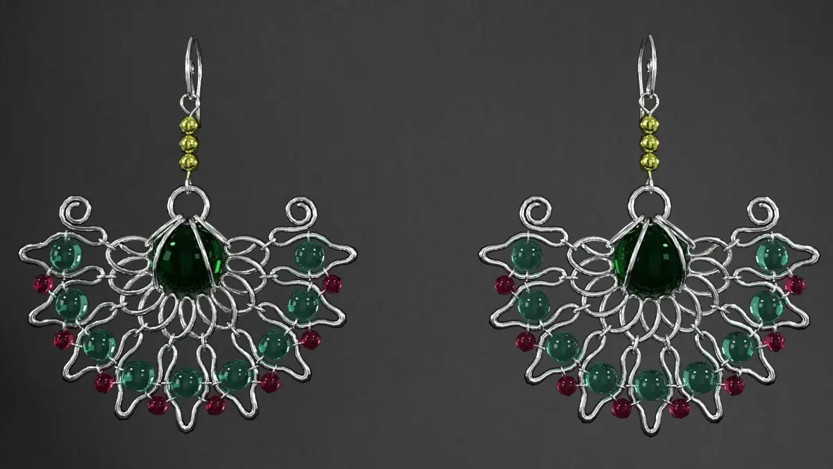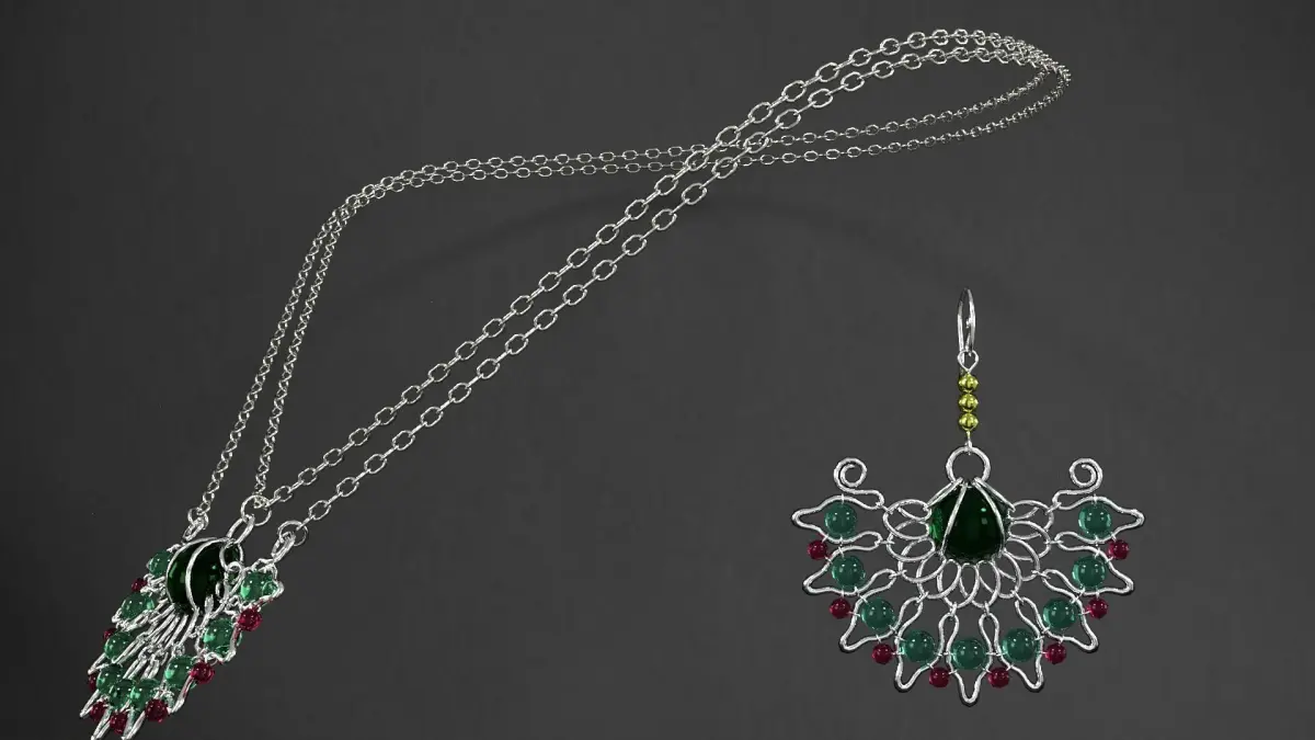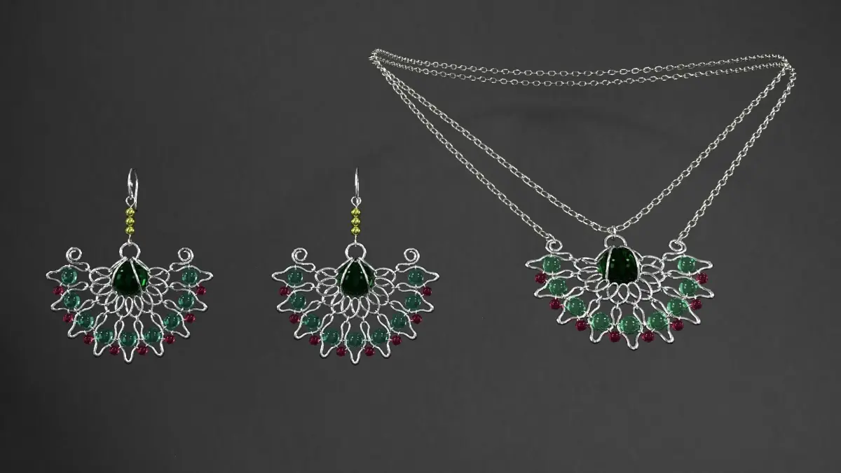 earrings emerald necklace and set 3D model