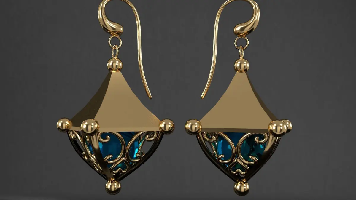 earrings gold and 3D model