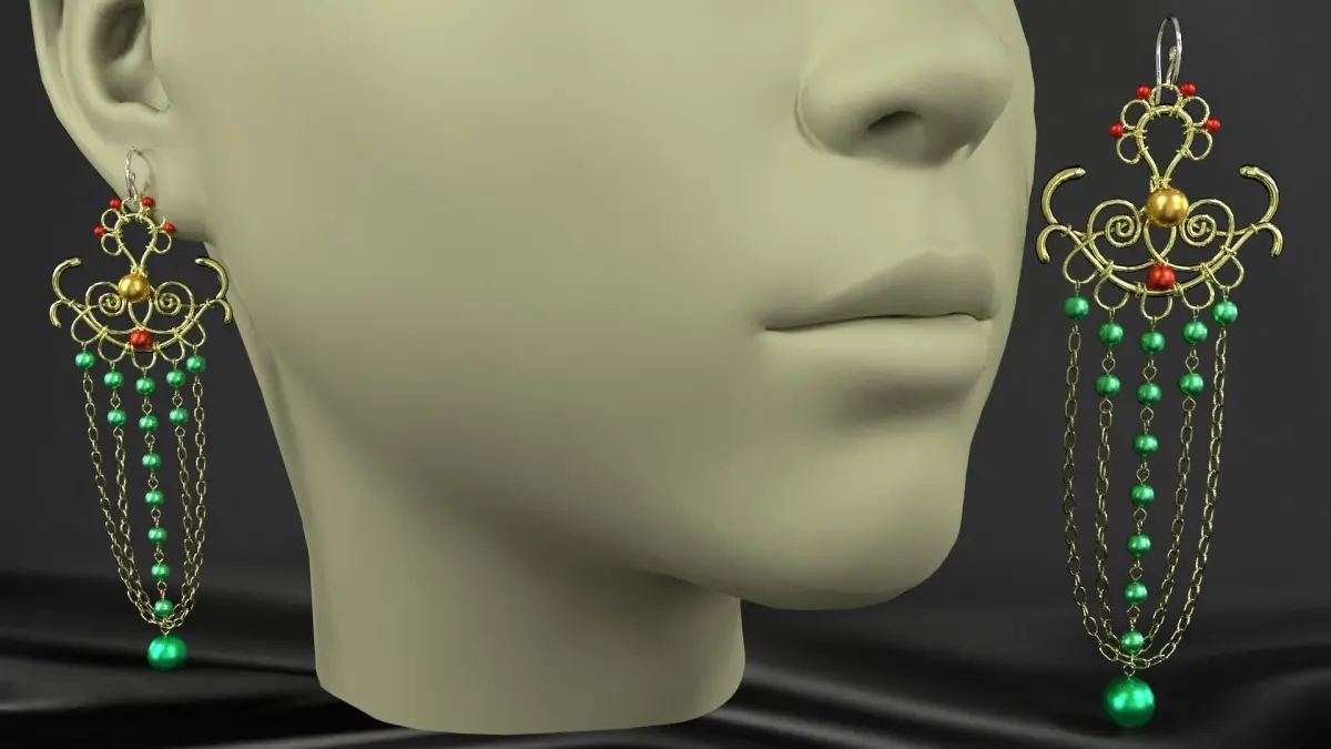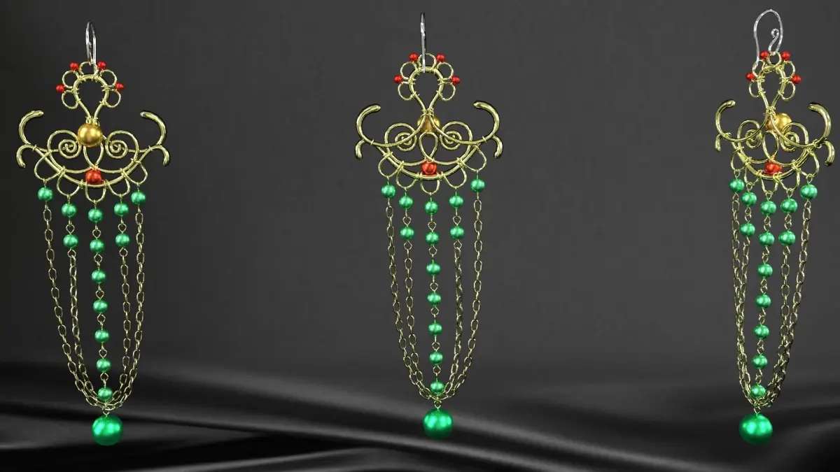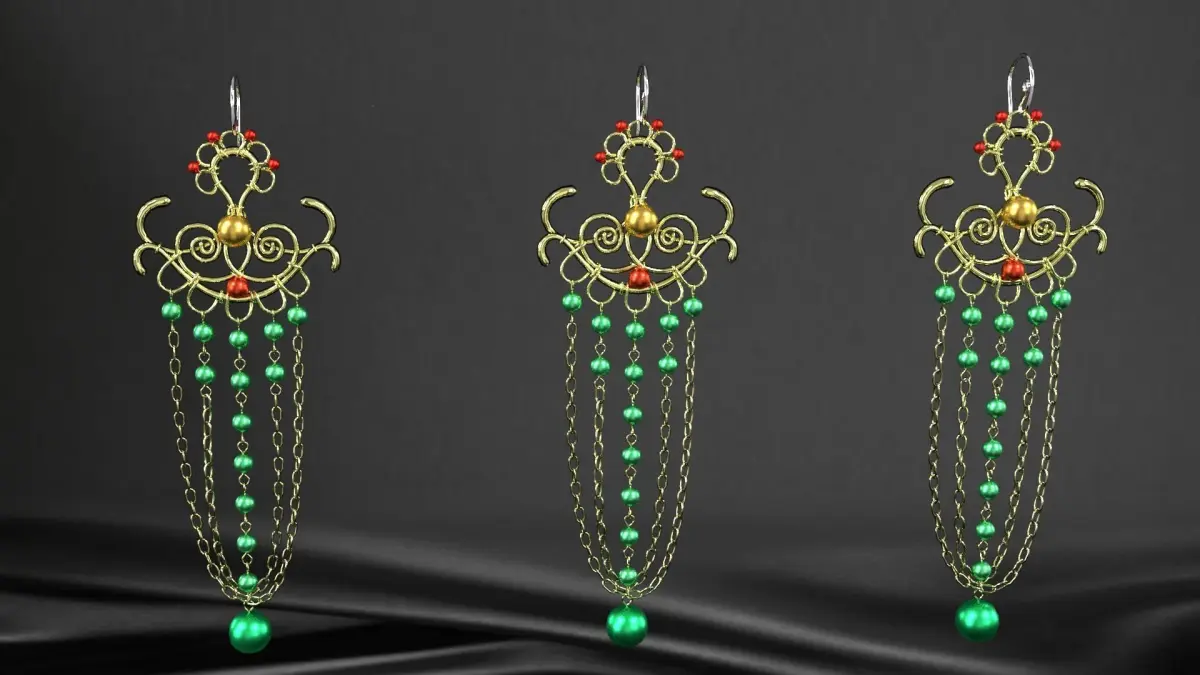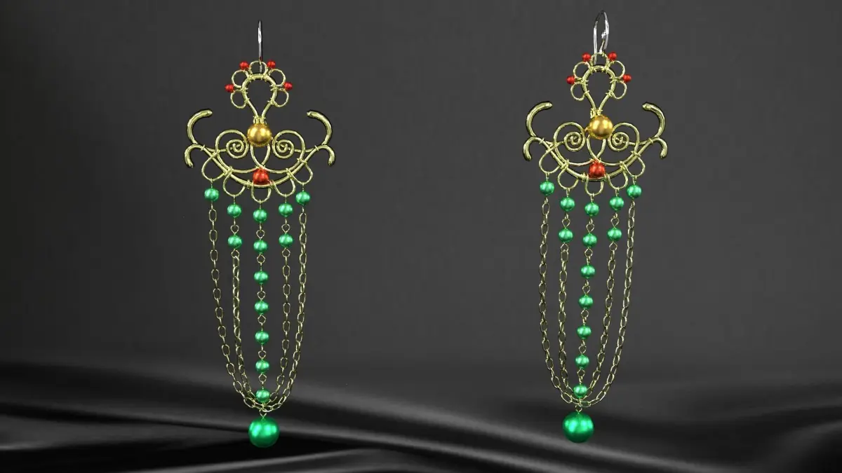 earrings pair of with beads 3D model