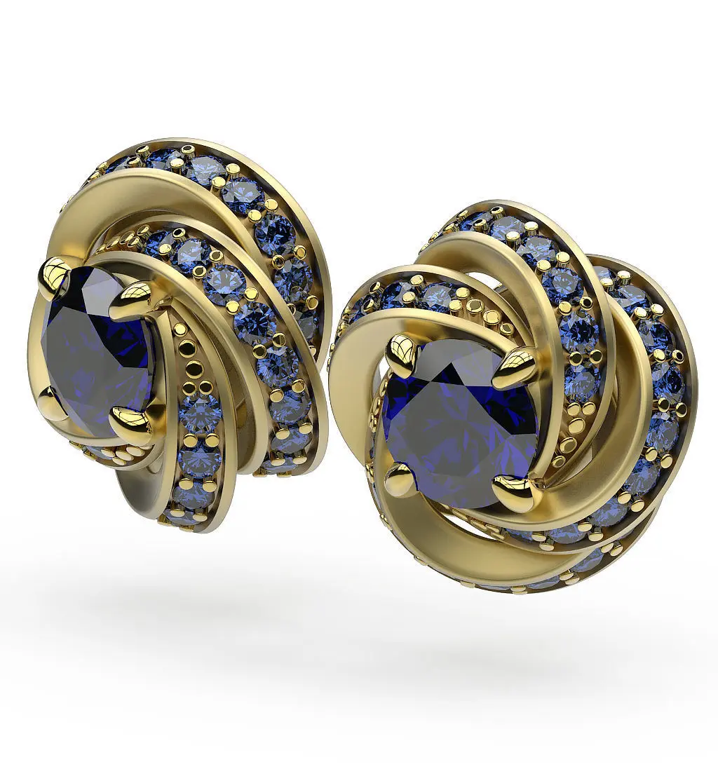 Extraordinarily light earrings with a swirl effect in design. Earrings will look equally good both in gold and in silver. The nominal diameters of the gemstones allow the use of colored earrings in earrings.