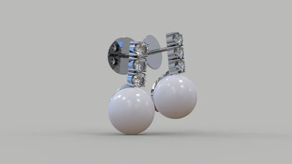 Earrings with locks twists. Adapted for 3D printer or CNC router. Can be made in platinum or gold. Used pearls, coral and any gems. In a pair of earrings six stones with a diameter of 2.8 - 3.0 mm and two balls (pearls or another) with a diameter of 9.5 mm You can make a color selection of stones