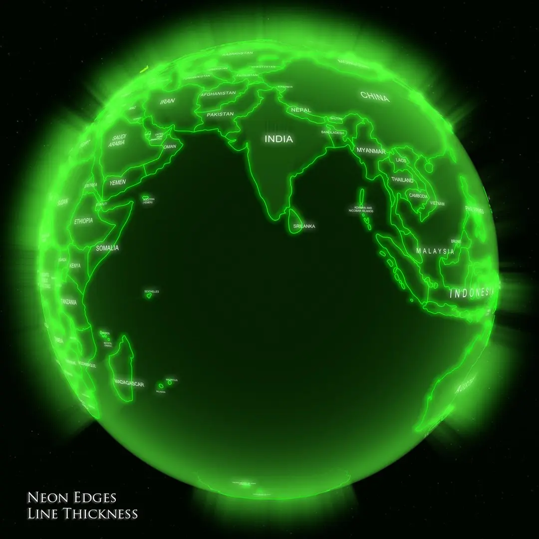 - Globe Neon _Edges, With Edges thickness to line of countries in a Neon Visual