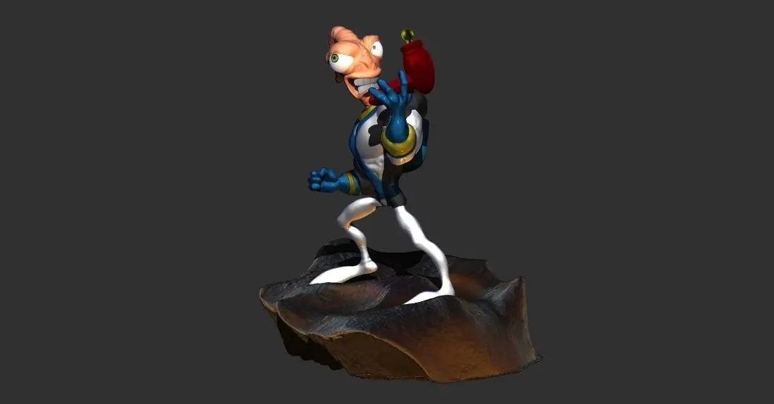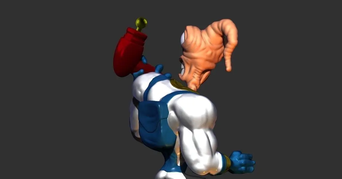 Finely detailed Earthworm Jim Fan art, sculpted in ZBrush. You can download this model that contains the base and the body of the figurine. In the download folder, you will have 2 files containing the body and the base separately, so you can print them in different builds, so you could use different colors and materials or maybe paint it more easily. Have fun and keep 3D printing