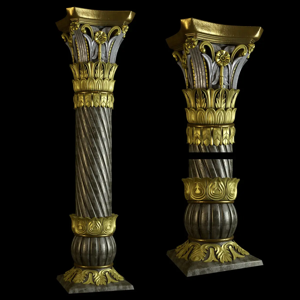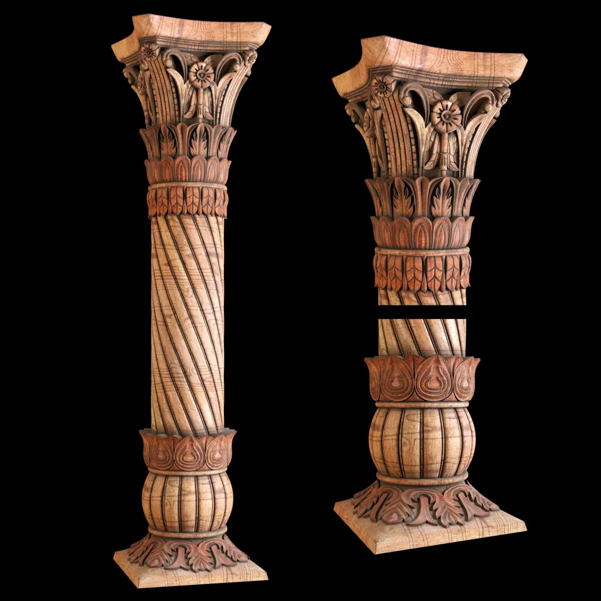 East carved column.This product includes East carved column to use any 3D software (3dmax, maya, blender, C4D, ...).There are three materials in this product, wood, stone and painted concrete.You can use this product for interior and exterior facades.3Ds Max, Corona 7.1, Unfold3D, Substance 3D Painter and Photoshop were used to prepare this product.