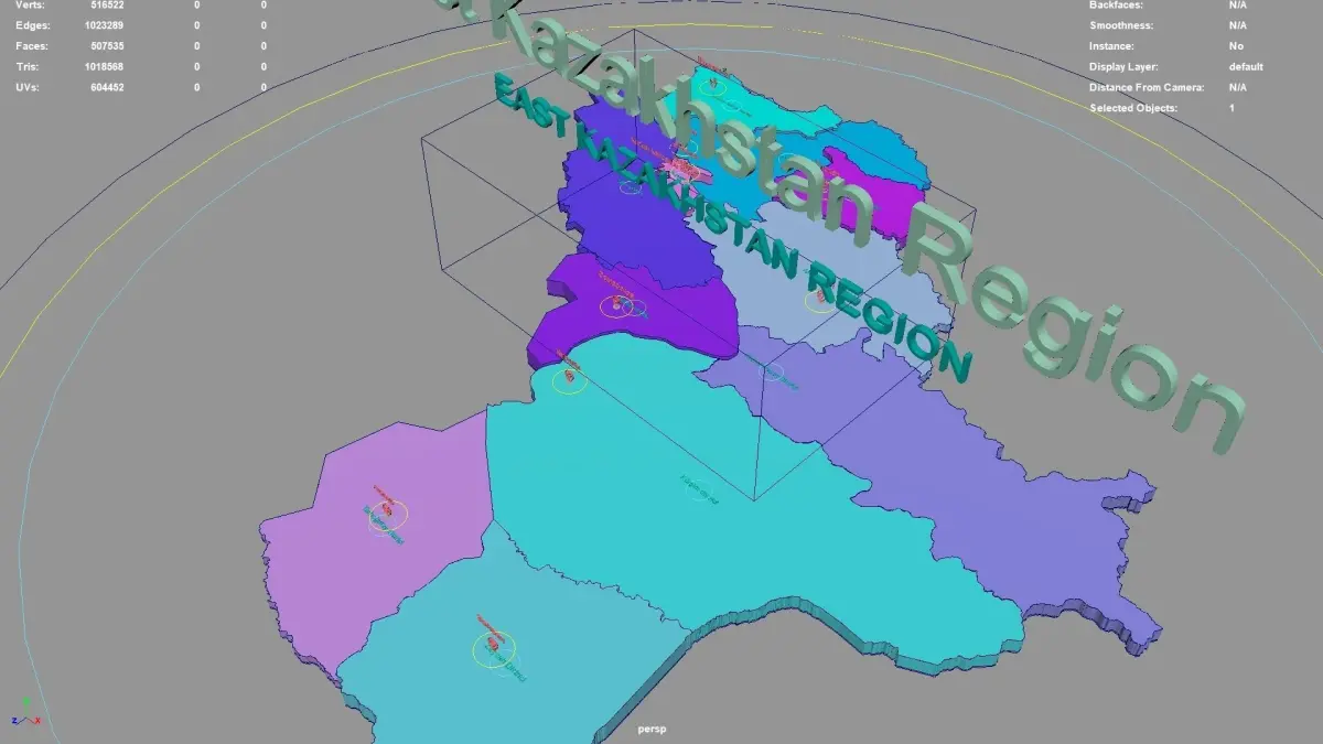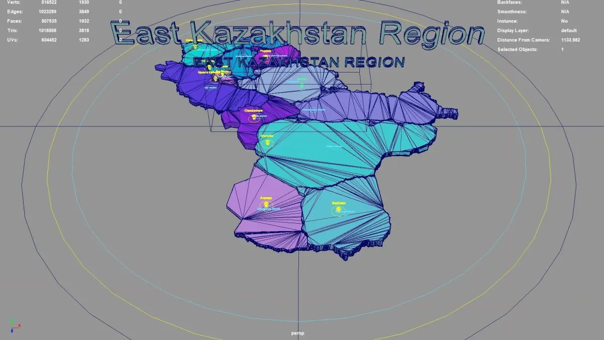 East Kazakhstan Region, Kazakhstan .map,region,geography,political,geographic,administrative division,city Landscape,3D model.