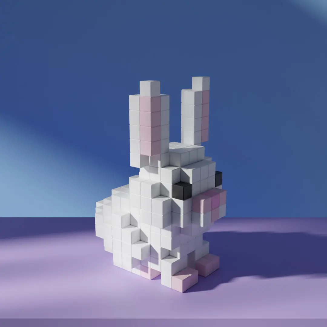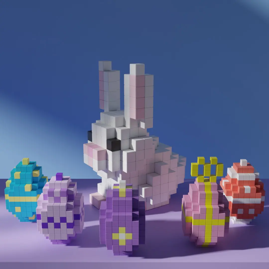 This voxel 3D model features a cute Easter Bunny surrounded by colorful eggs, designed entirely with cubes in a charming low-poly voxel style. Perfect for game developers, animators, and digital artists looking to add a festive and joyful character to their voxel-based projects.The model is optimized with clean geometry and a lightweight structure, making it ideal for real-time applications such as games, animations, VR/AR experiences, and pixel-style visualizations. It includes multiple file formats for seamless integration into various 3D software.A great asset for indie game creators and designers looking for a fun and holiday-themed voxel character to enhance their collection!