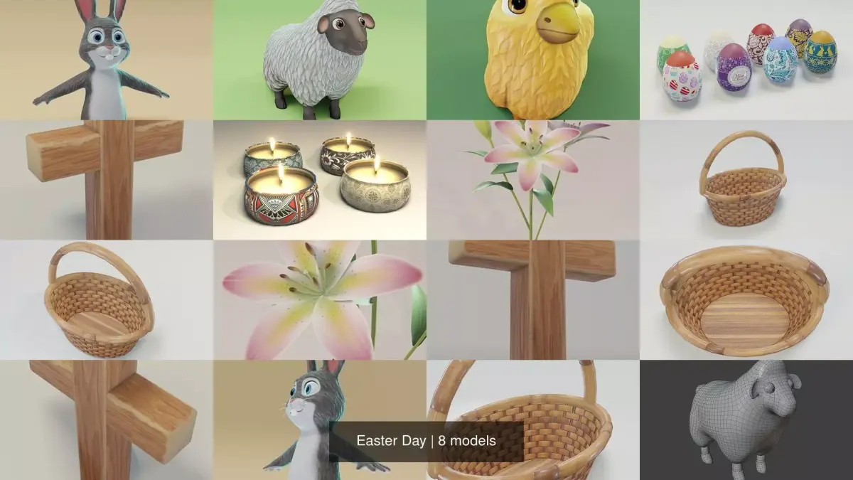 Easter Day collection is completely ready to be used in your games, animations, films, designs etc. It includes separate models: