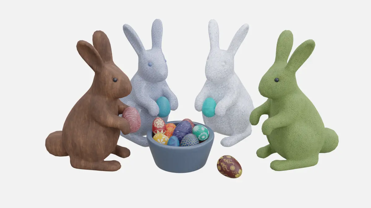 Rabbit and eggs with PBR Textures. Model was made with Blender and textured with substance painter.
