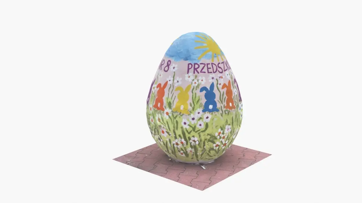 Easter Egg on the street Kindy8 is low poly3dmodel scanned from a real sculpture in 1:1 scale, after retopology.Contains 6 textures 2048x2048 pixelsdiffusemetalnessroughnessspecularnormal mapambient occlusion