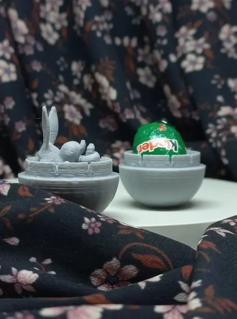 Will you be able to find the surprise in the egg?Game rules:print at least two eggs, one empty and one with the prank (the prank is the rabbit showing its bottom and doing a big poop). Put a chocolate egg or a small gift in the empty egg, present them to a family member during the holiday lunch and observe their reaction.Will they find the poop or the chocolate?Okay, very funny, but:how do you print it?It's very simple,if you have a Creality K1 Max, just load the gcode I use!Otherwise, import the stl models into your preferred slicing program and print it, you'll get an egg split into two parts. Once printed, remove it from the bed and close it.The first time might be a bit hard to open and close,just open and close it a few times to make it smoother.If you prefer, you can remove a very thin inner layer by gently filing the inside of the top part of the egg, but with my printer just snapping it and opening it a few times will work great without any post-processing. Easy!Do you need supports? NO!They're not needed, you don't even need to add a brim, glue or adhesion methods (I've tested with my K1 Max printer).To sum up:print without supports,no need for glue,no need for adhesion methods,print two eggs to play with someone.Have fun!!And yes,you can sell the renders and 3D prints for commercial use,but you can't distribute the digital 3D model file because I'm the author and I prefer to personally control the distribution of the digital file.Thanks and enjoy the surprises!!MY 3D PRINTING PARAMETERSSoftware: Creality Print.Printer: Creality K1 Max.Filament: Creality Hyper PLA.Layer Height: 0.1mm.Line Width: 0.4mm.Wall Line Count: 2.mm.Infill Density: 9%.Build Plate Adhesion: NONE.SUPPORT: NONE.Printing Temp: 220°C.Plate Temp: 45°C.Inner Wall Speed: 300mm/s.Outer Wall Speed: 500mm/s.
