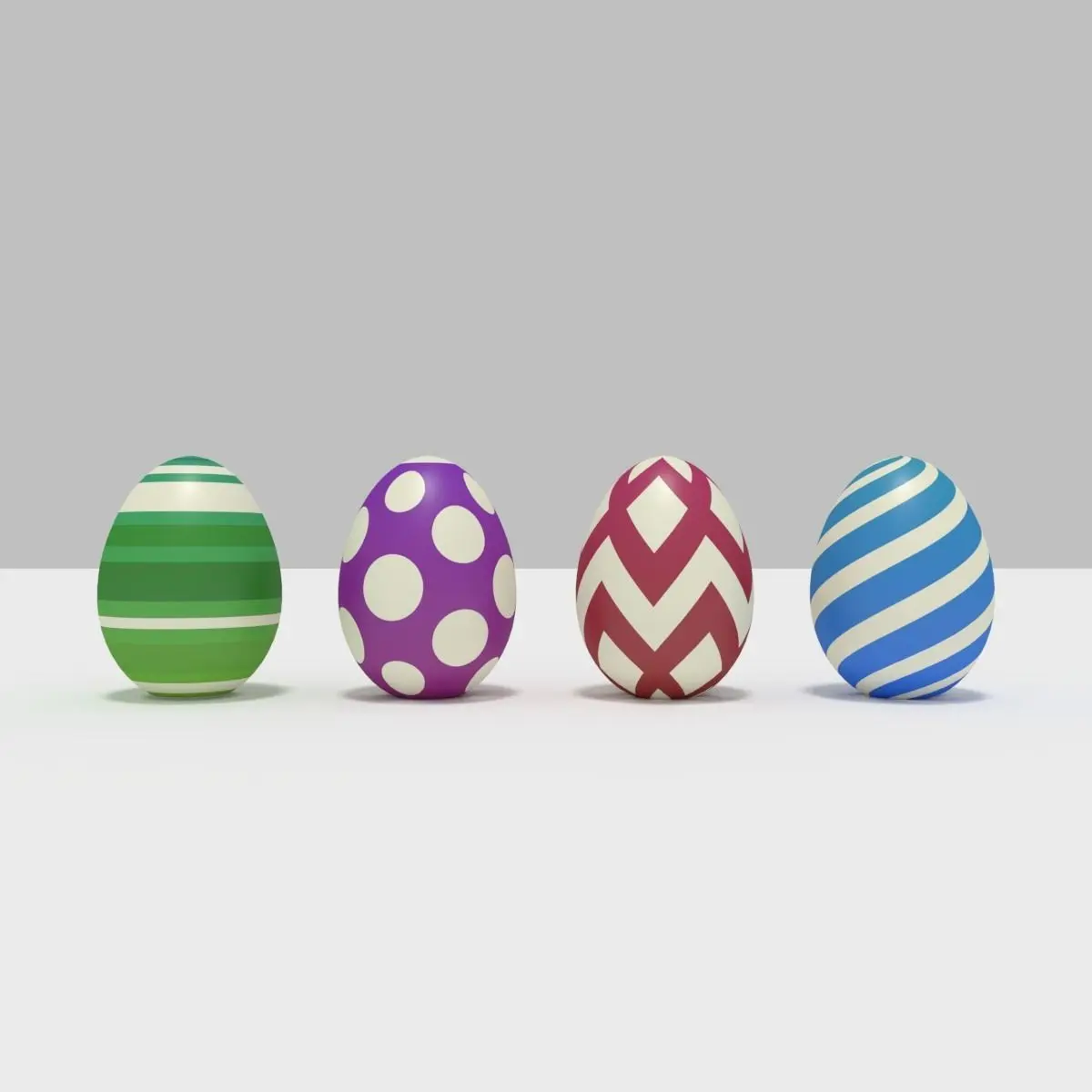 Models of Easter Eggs, as they can be seen in the Easter Animation. (The stated Faces and Vertices count is of all the Eggs combined after the Subdivision applied a.k.a. High Poly model)