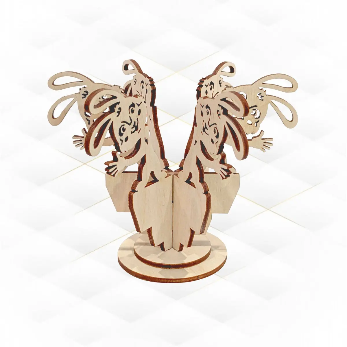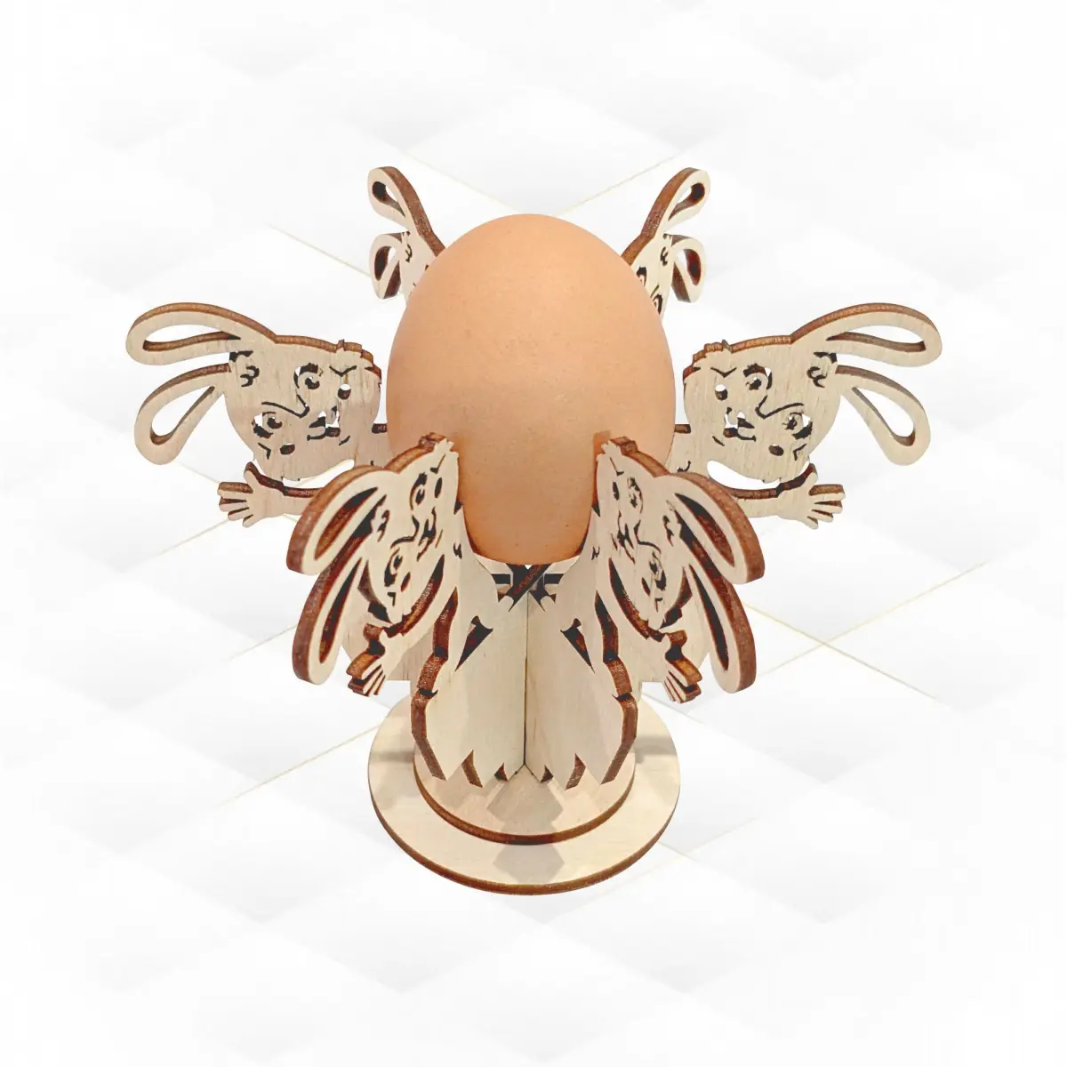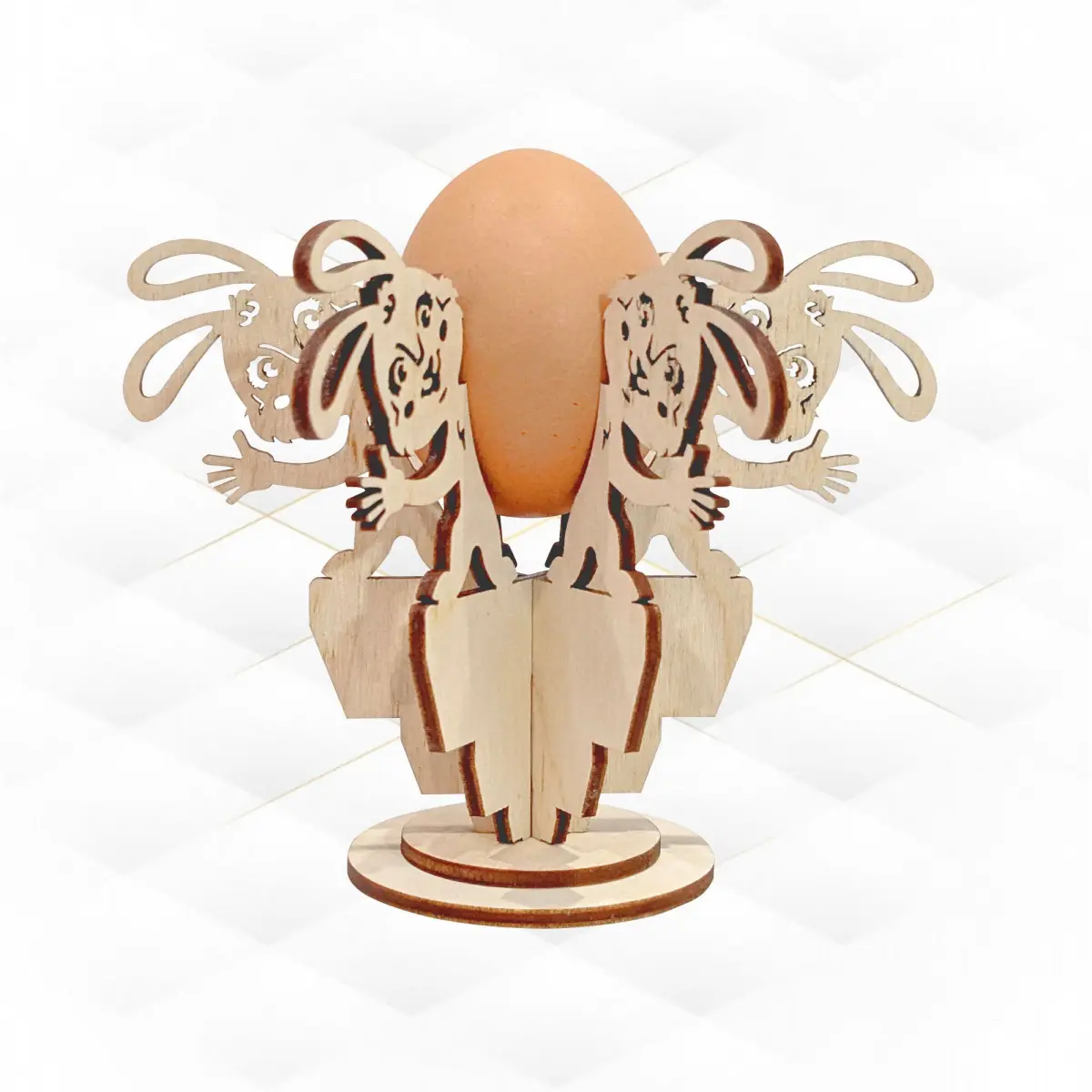 Easter Gift decor, egg stand holder, design laser cut. Easter Bunny pattern, laser cutting template, holiday kitchen decor. Cut model, svg dxf files, cutting design. Easter greeting. Laser svg, laser craft, laser template. Engraving laser, handmade Easter, cut drawing. Laser project, vector template, cut plan. Xtool files, Glowforge cut file. CNC laser, digital layout, greeting design. Original, unique product design will help you create a stunning gift or product for your store. Universal product! It can be made from plywood (as in the photo), cardboard or other material. Additionally, painting in your favorite colors, you will receive an exclusive gift, well, just a gorgeous thing!