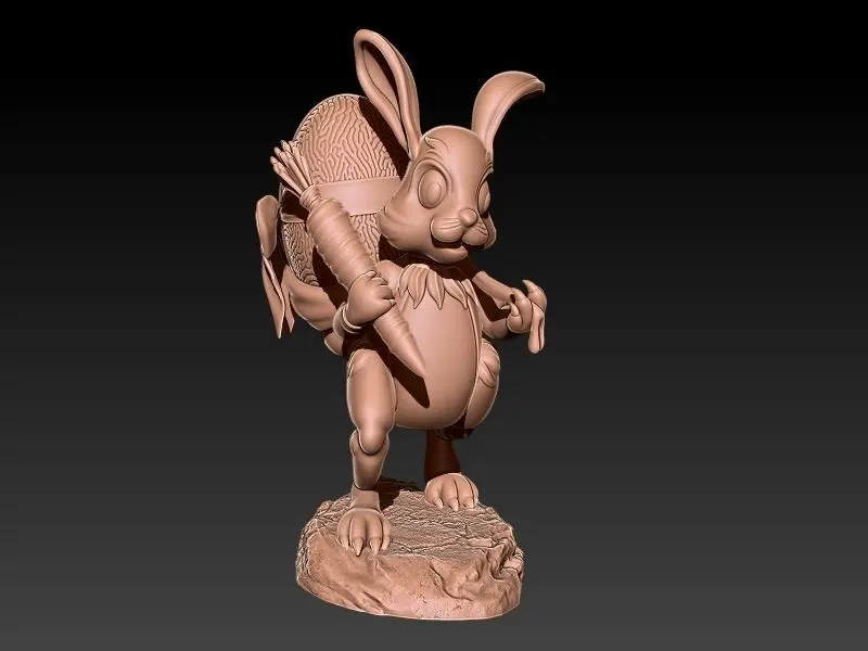 An Easter Rabbit carrying a bag with an egg. Full assembled and with sliced parts. Extracted for a scene with 200mm of height. The egg has a hollow version divided in the middle into two parts.