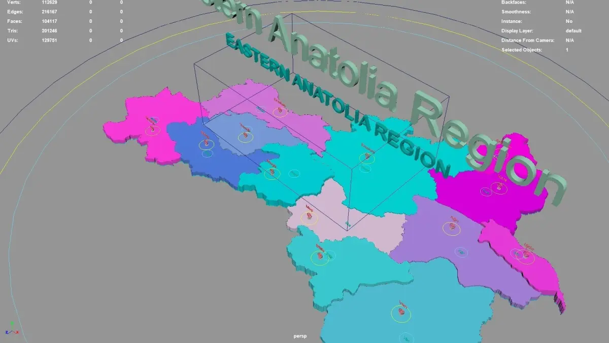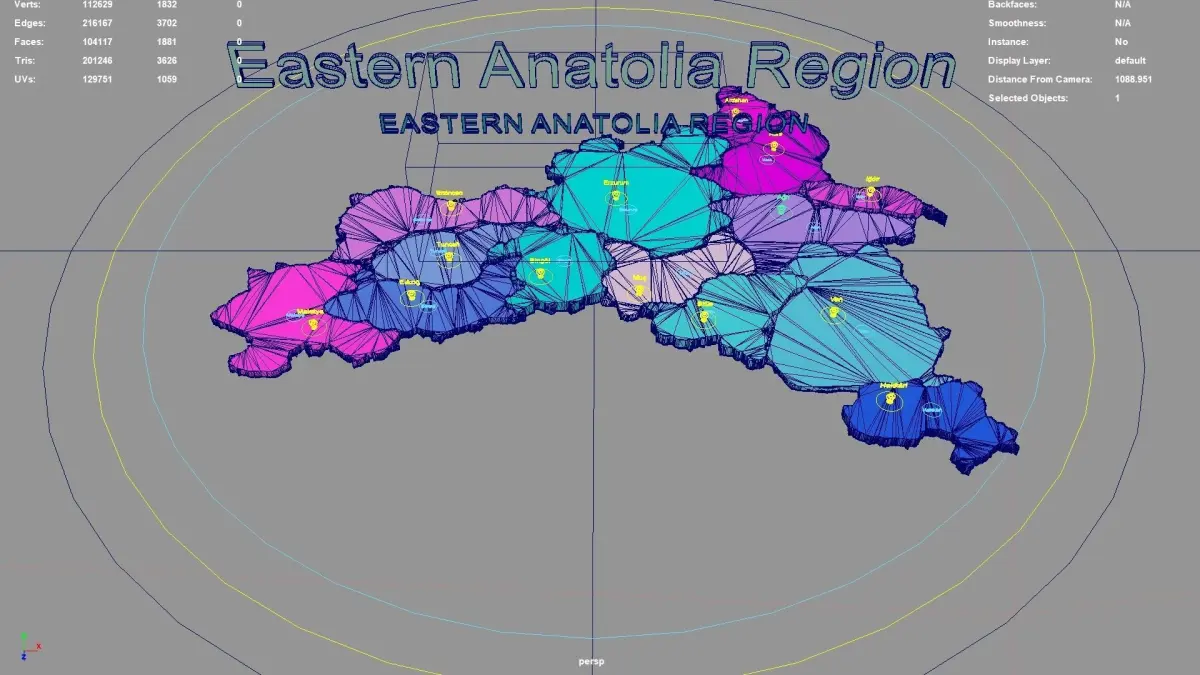 Eastern Anatolia Region regions : The model is divided according to the administrative region of Eastern Anatolia Region. Each region is clearly separated so you can easily isolate it or change the colors. Names are also editable and separate.