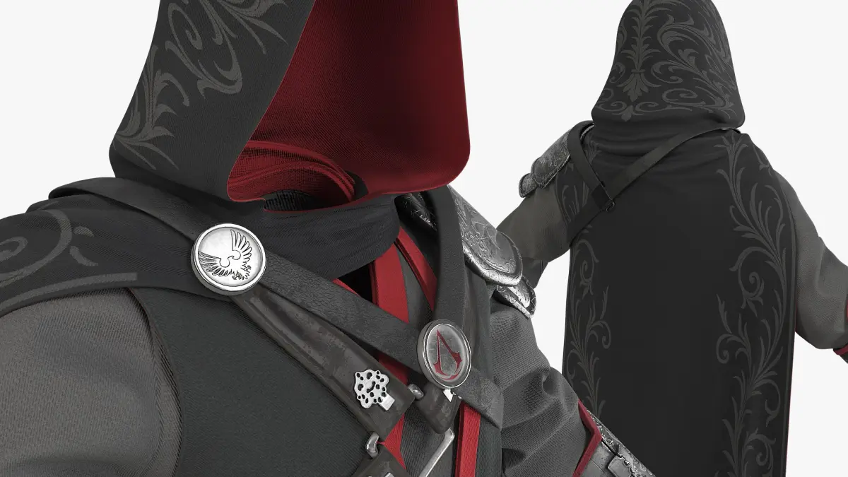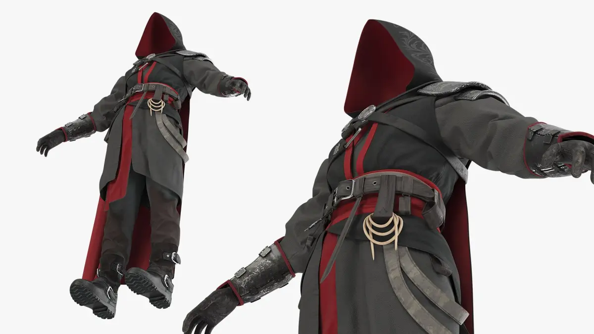 Eastern Shadow Assassin Outfit with Hooded Cape Black is a high quality, photo real 3d model that will enhance detail and realism to any of your rendering projects. The model has a fully textured, detailed design that allows for close-up renders, and was originally modeled in 3ds Max 2020 and rendered with V-Ray. Renders have no postprocessing!