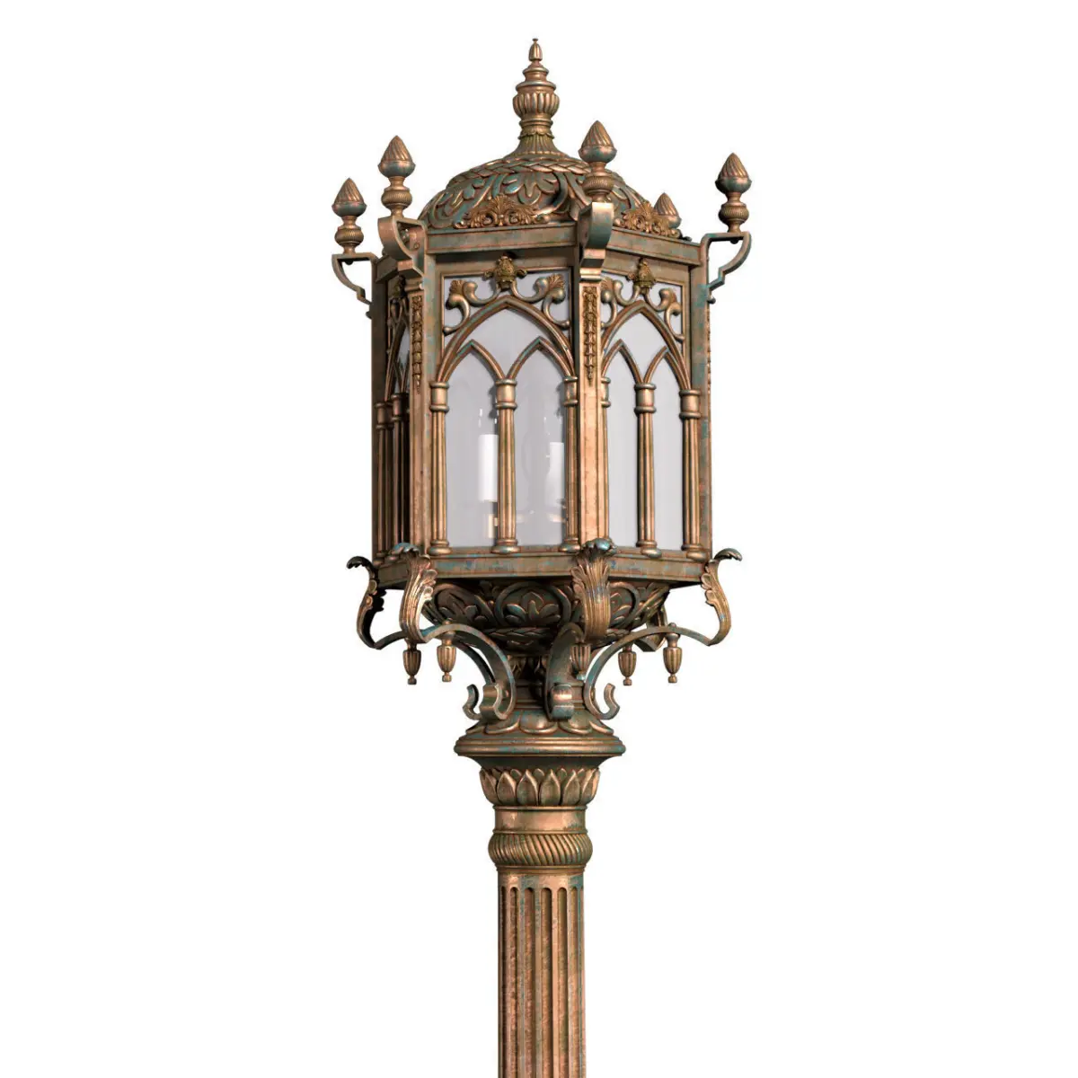 A large street lamp on a supportOutdoor street LanternAntique Outdoor Lampforged wrought Lampwrought Lamp Lanternfloor lamp