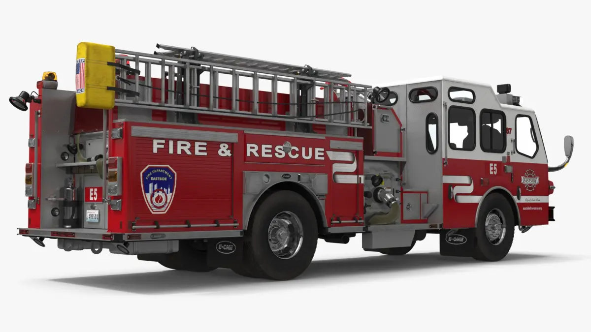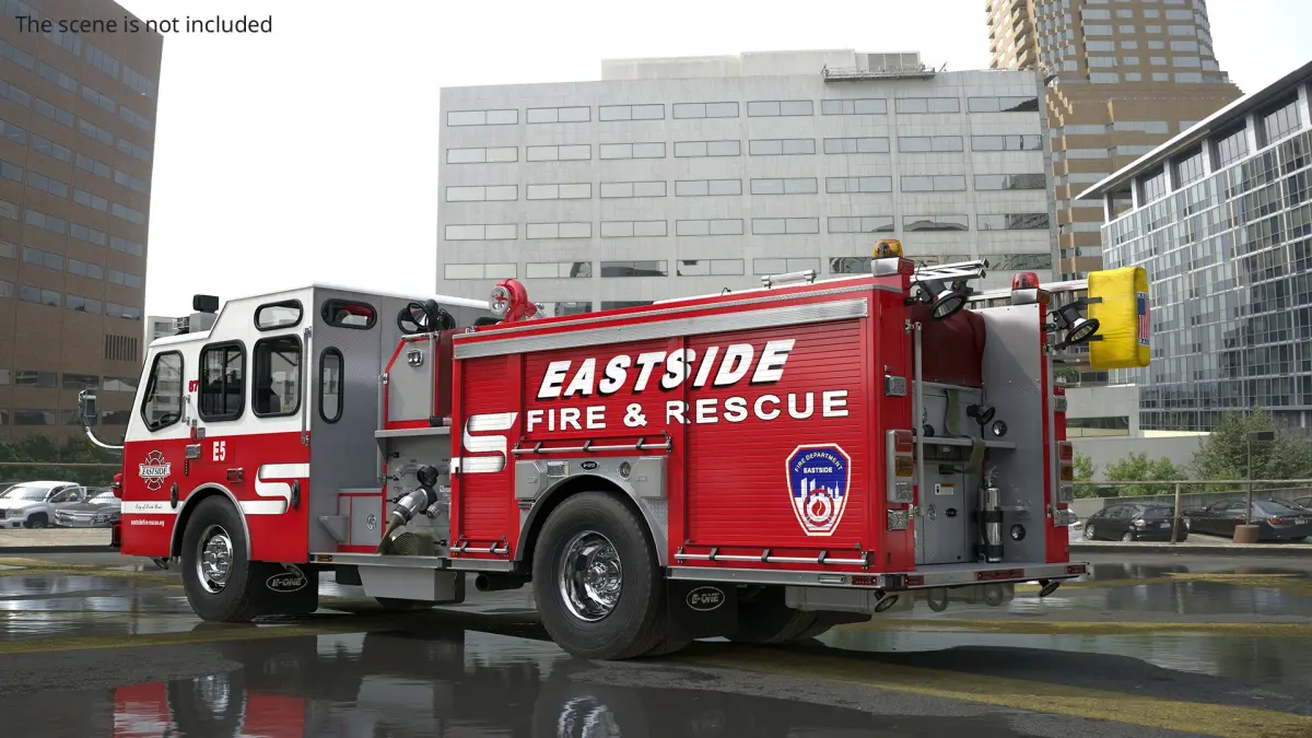Eastside Municipal Firefighting Truck E5 Red is a three-dimensional model of modern firefighting vehicle designed for rapid emergency response.