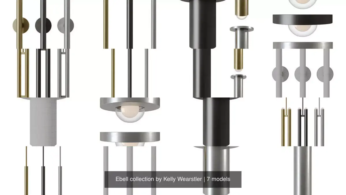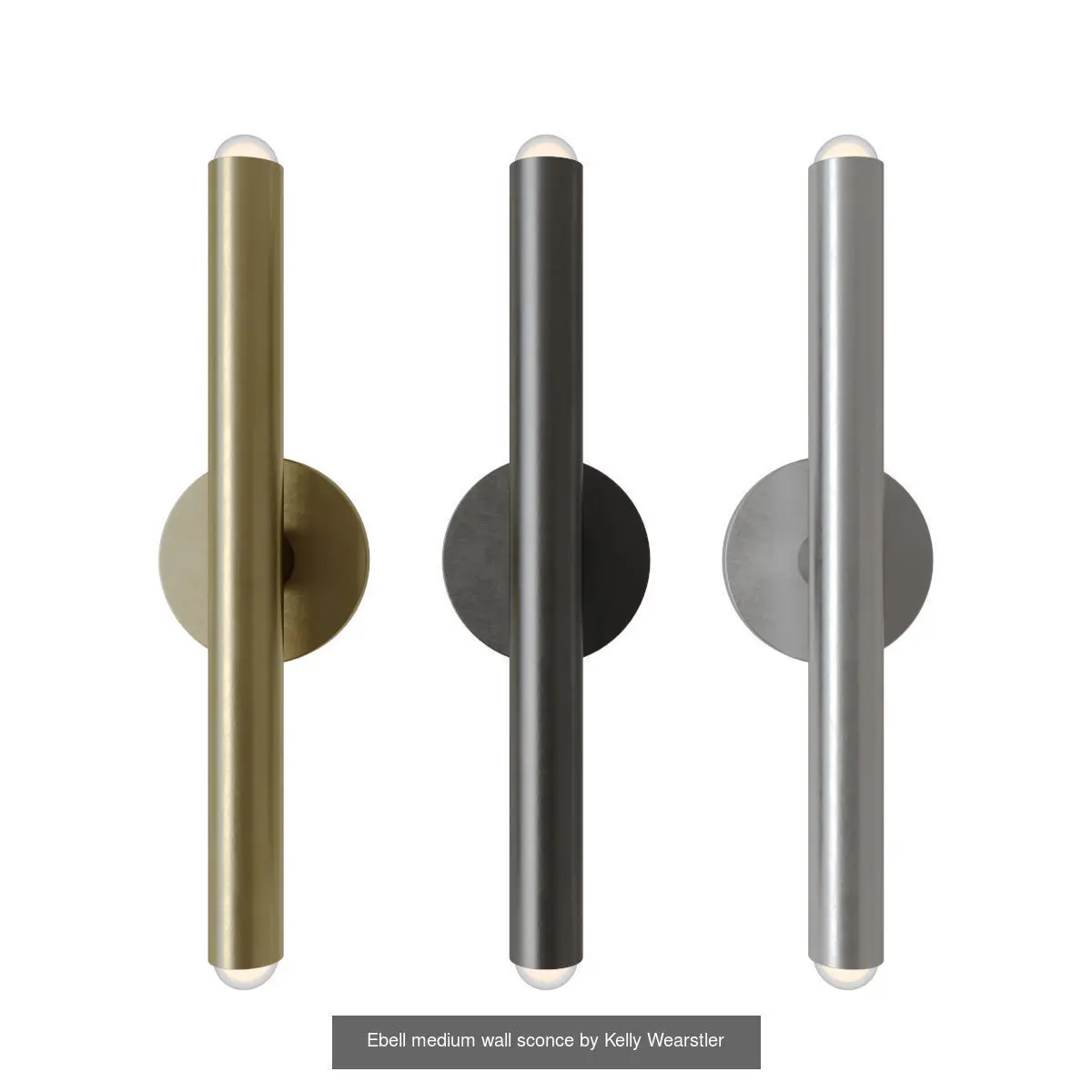 Ebell collection by Kelly Wearstler includes Medium Wall Sconce, Small Pendant, small flush mount, medium flush mount, mini flush mount, 2 light pendant, large floor lamp.