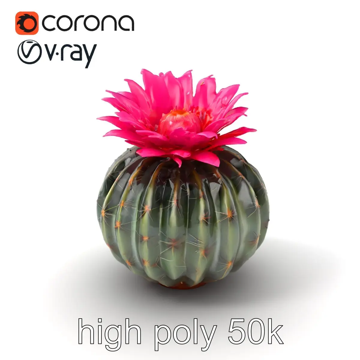 This Echinopsis Spherical Cactus with a vibrant pink flower is perfect for desert-themed scenes, interior designs, and botanical visualizations. Its detailed ribbed texture and thorny surface add authenticity and visual interest.