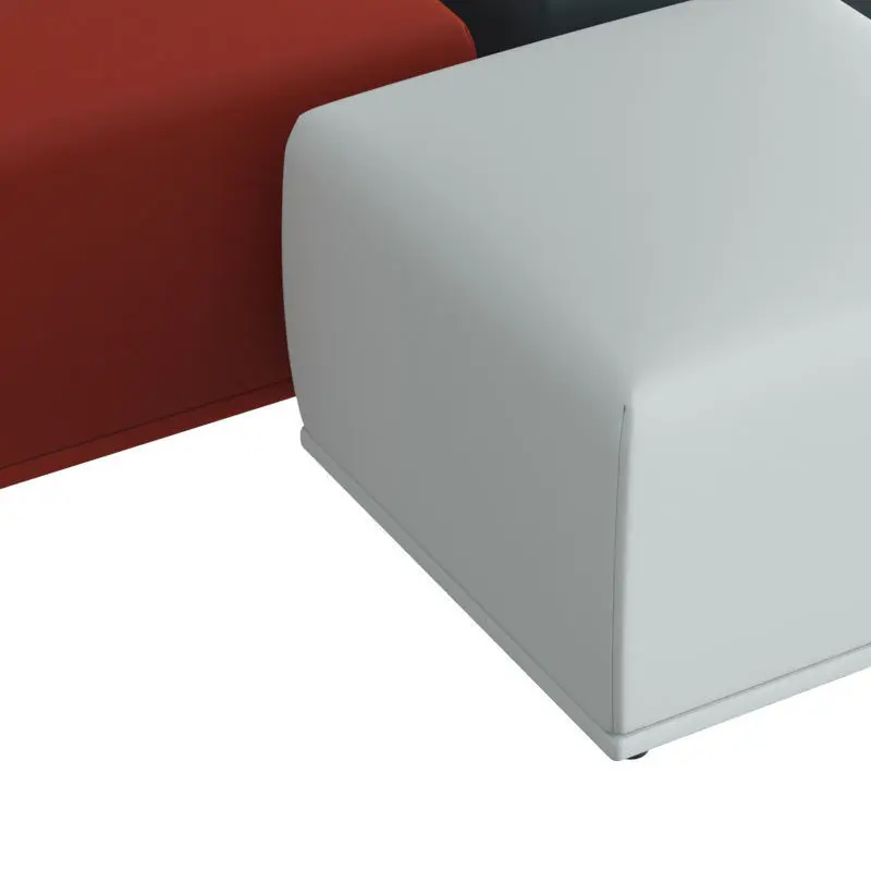The Echo Pouf has a simple, friendly expression that brings comfort and function to any space alongside its light and almost hovering expression through its small legs underneath. The name of the Echo Pouf refers to how the design can be used in symmetric formations or clusters with various sizes and upholsteries, creating visual echoes throughout the space.