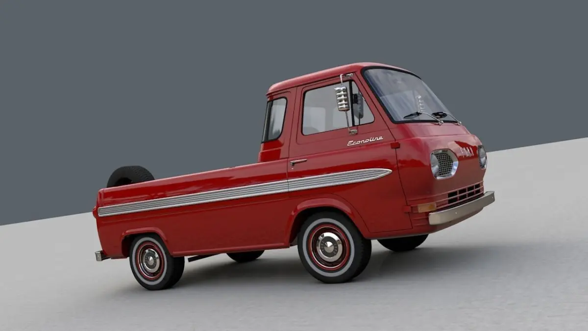 High detailed 3D model FOR-D ECONOLINE E100 PICKUUP 1962, from inside and outside.