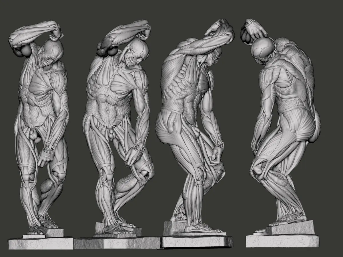 Ecorche made in zbrush, its made after the sculpture called Bearded Slave made by the legend itself Michelangelo